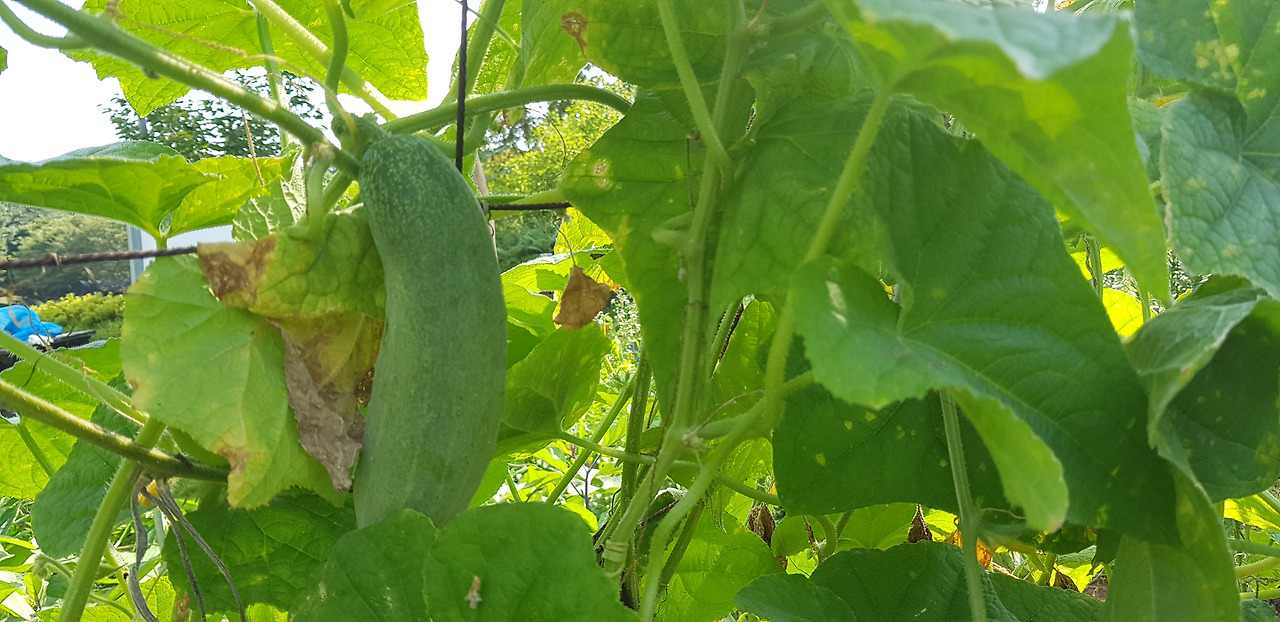 오이도 몇 개 열려서 잘 크고 있습니다. 이제 거의 끝물입니다.