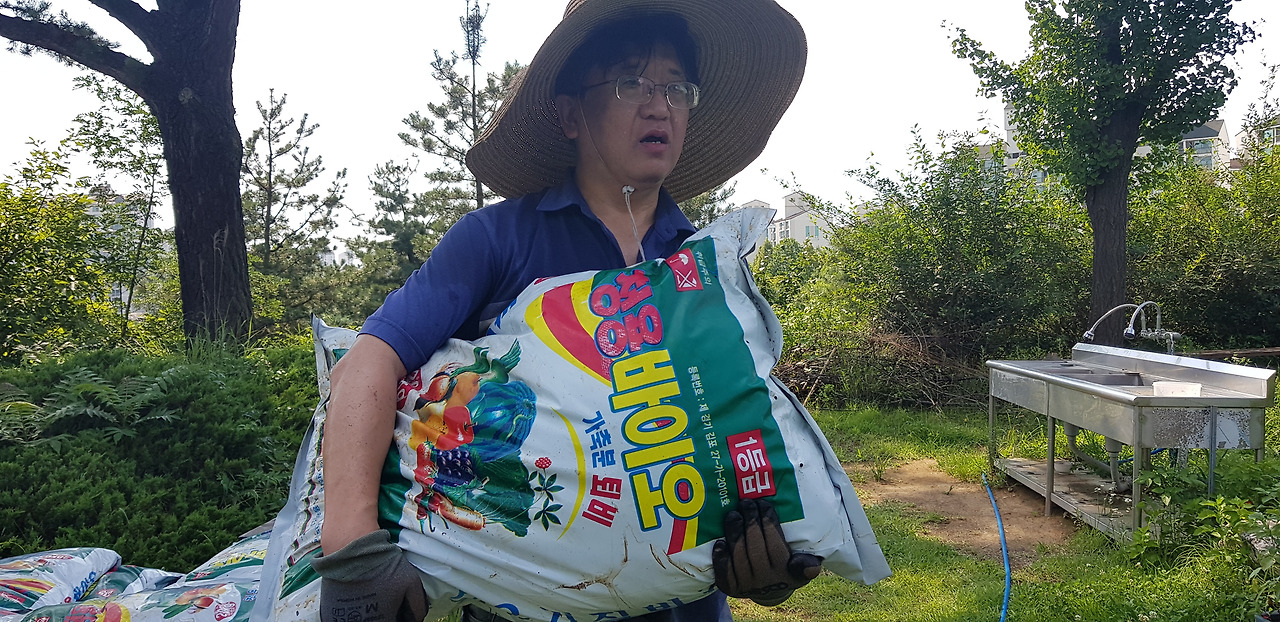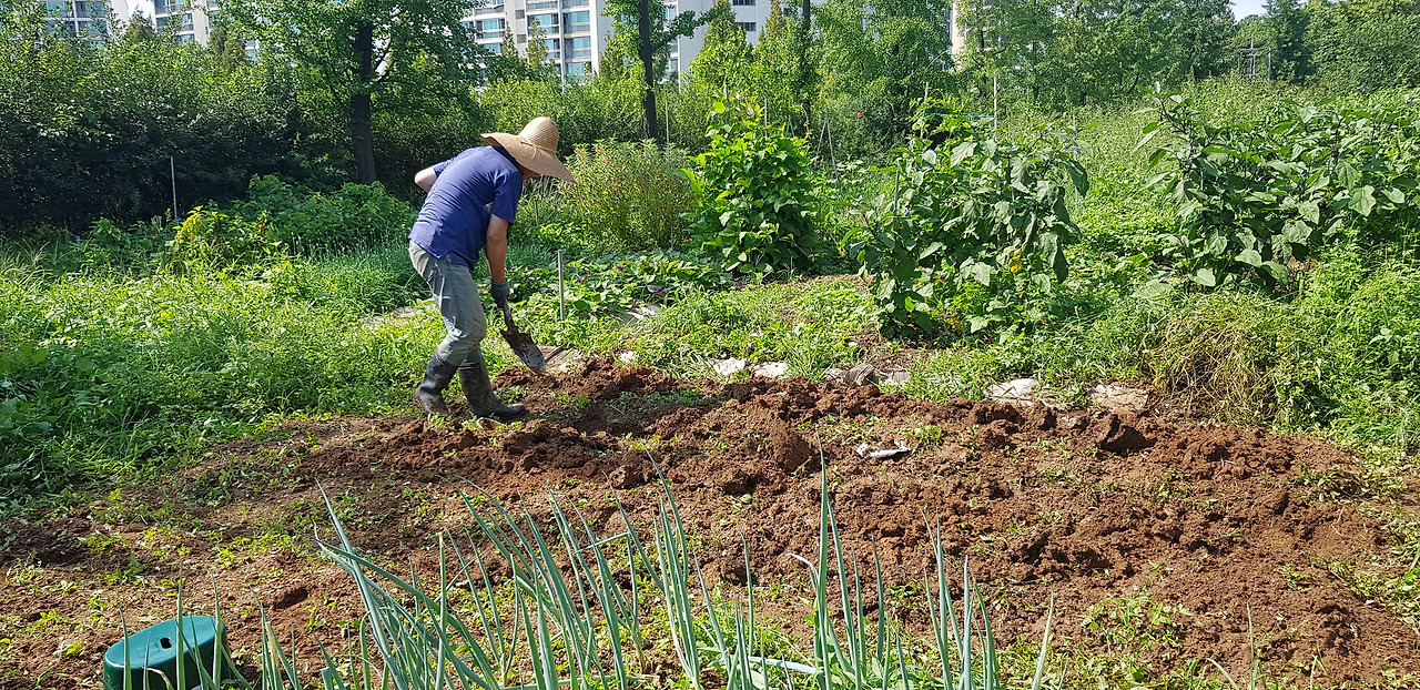 풀을 뽑고 땅을 갈아 줍니다. 쉬워 보이지만 평소에 안 하던 일이라 많이 힘드네요. 날도 더워 땀도 많이 나고요.
