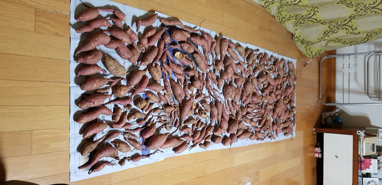 집 거실에서 말리고 있습니다. 이제 한동안 점심 도시락은 군고구마입니다.