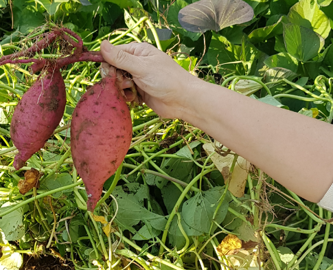 수확하다가 여러 개 달린 고구마 뿌리를 들고 한 장 찍었는데 막상 사진을 보니 작게 나왔네요.