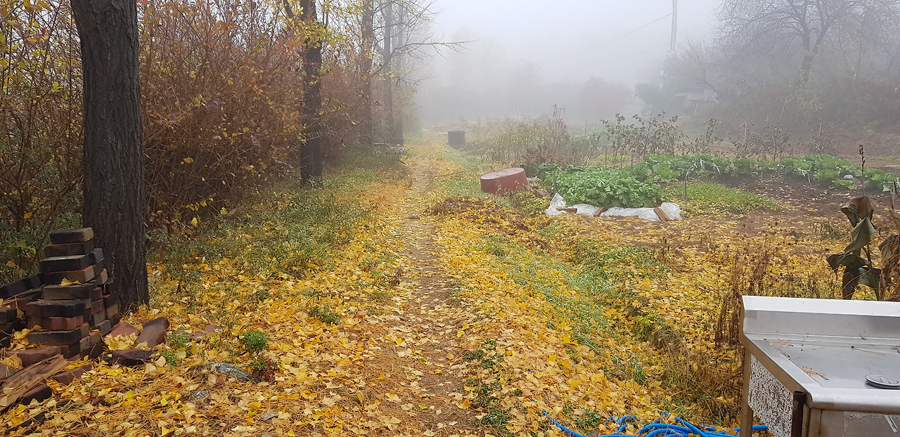 농장 옆 작은 산책길입니다. 왼쪽에는 은행나무가 늦가을 정취를 더하고 있습니다.