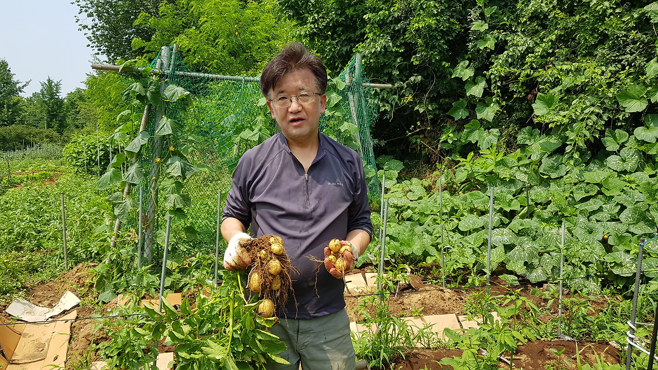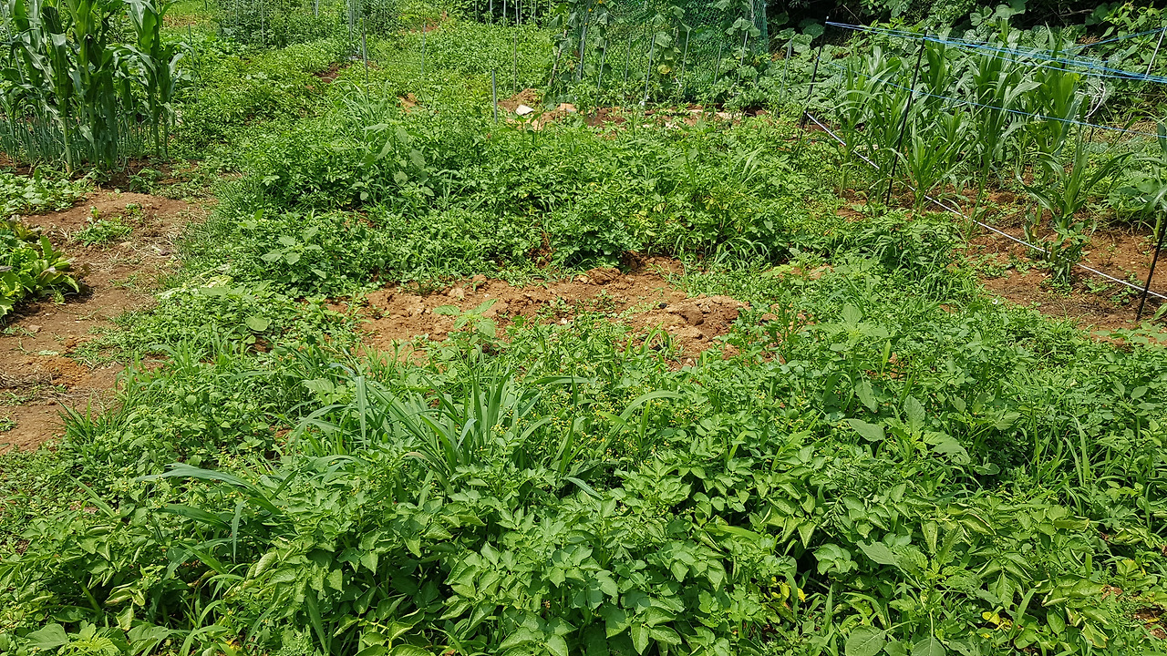 감자밭입니다. 4월 중순에 심은 감자밭입니다. 하지 전에 케야한다고 해서 하지감자라고 합니다.