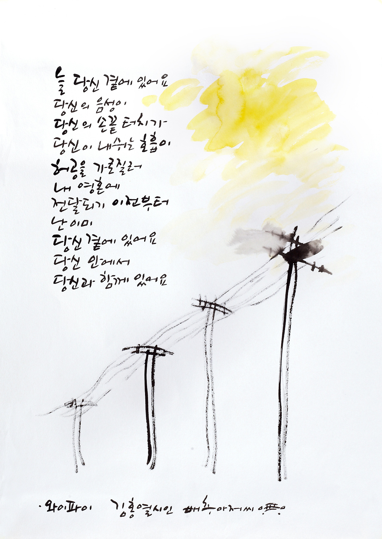 도처에 와이파이다. 내 스마트폰은 늘 와이파이를 향하고 있다. 와이파이가 당신을 연결시켜 준다. 그러나 와이파이 이전부터 내 마음은 항상 당신을 향해 질주한다. 아니 이미 당신 안에 있다. 당신 안에서 당신과 함께 있다. 와이파이가 없어도 나는 당신과, 당신은 나와 늘 소통하고 있다. 우리 둘 만의 와이파이는 오래전부터 있었다.