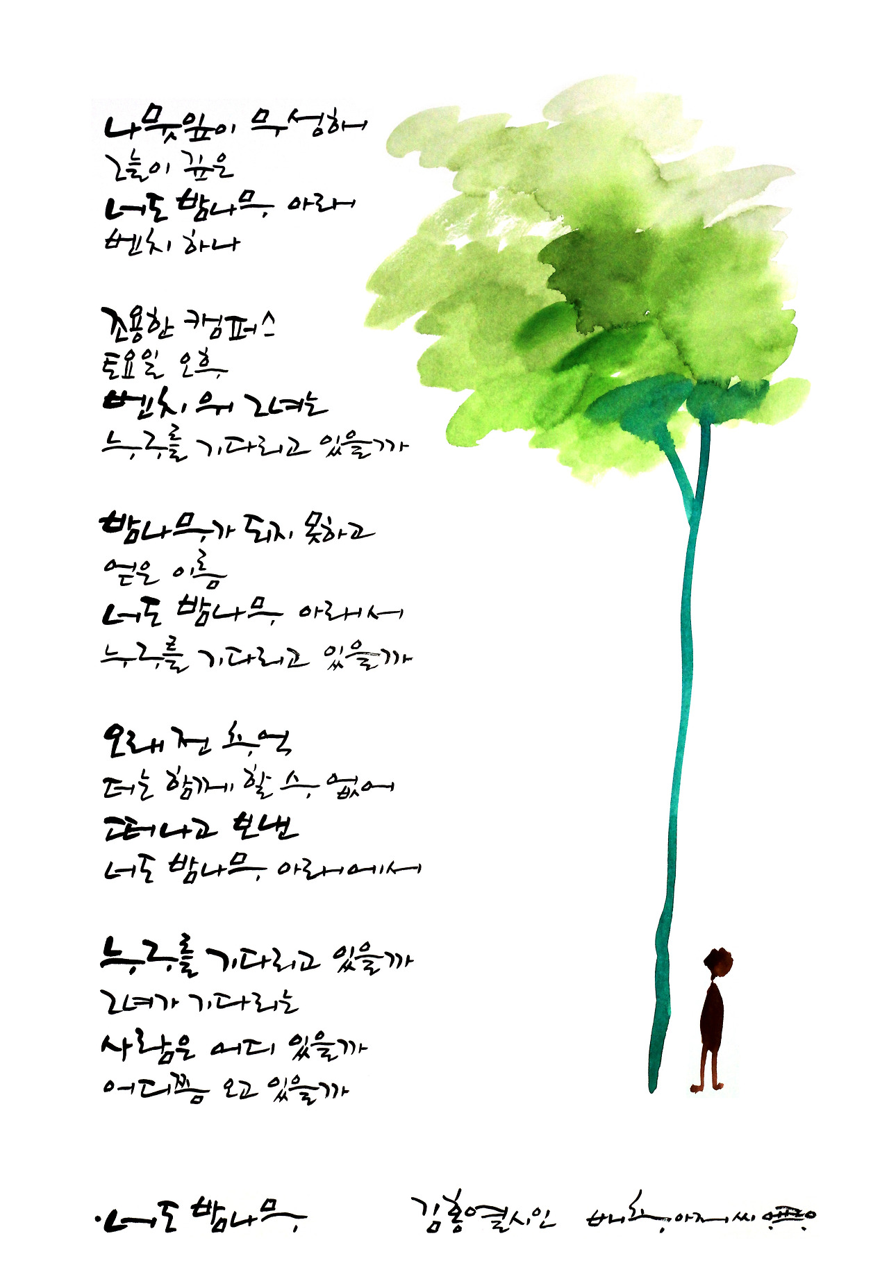 우리가 흔히 아는 '밤나무'가 있다. 그리고 밤나무와 비숫하게 생긴 '나도밤나무'가 있다. 경상도, 전라도 해안 지역에서 자라는 나무다. 이 곳에 살던 사람들이 이런저런 이유로 울릉도에 가서 살게 되었는데 '나도밤나무'와 비숫하게 생긴 나무를 발견하고 그 나무에 붙인 이름이 '너도밤나무'라고 한다. 성공회대 캠퍼스에 오래된 '너도밤나무'가 몇 그루 있다. 토요일 오후 연구실에 있다가 잠시 밖에 나오면 누군가 이 나무 밑에서 나를 기다리고 있을 것 같은 느낌이 든다. 밤나무가 되고 싶은 나무들, 당신과 함께하고 싶은 마음들.....