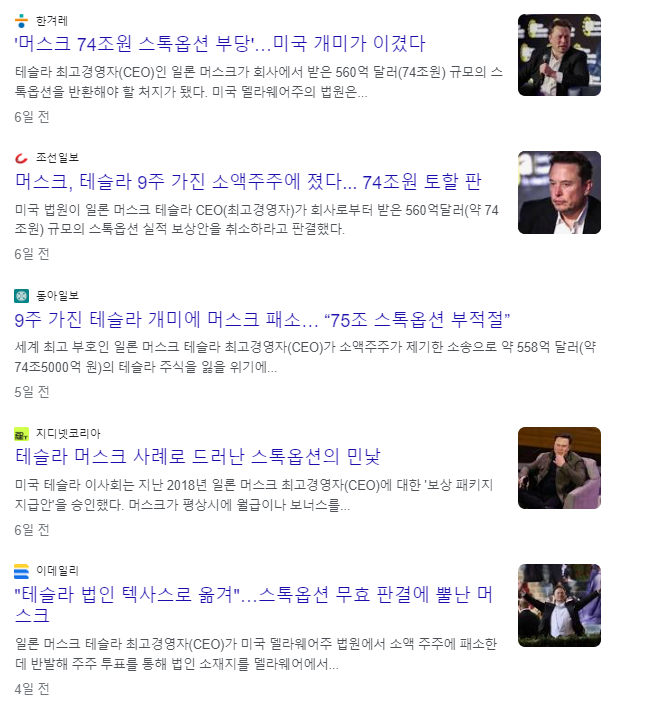 한편, 최근에 테슬라 CEO 일론머스크의 스톡옵션 관련 보상안에 대한 의사결정 과정이 불합리했다는 비판과 동시에 그 보상안의 절대적인 금액 역시도 과도하게 높다라고 여기는 것 같습니다. 경영자가 다른 이해관계자들이 납득할 수 없는 수준의 보상을 받는다면, 다른 이해관계자들도 목소리를 낼 수 있겠죠.
