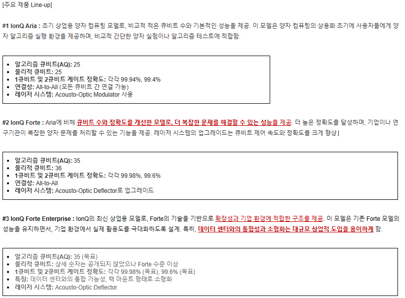 장기적 성장 가능성: IonQ는 다양한 큐비트 용량의 양자 컴퓨터를 제공하며, 더욱 높은 연산 능력을 가진 기술 개발에 주력하고 있음.