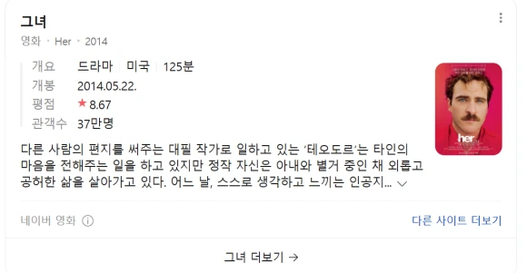 종국에는 영화 Her처럼, 더 정교화 되면 정서적으로 깊은 교감이 지속되면 사랑에 빠지는 것도 대수롭지 않은 일이겠다 싶다.