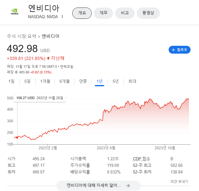 올해 들어 엔비디아 주가가 많이 올랐었죠.