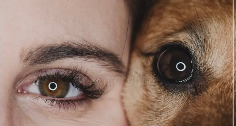 사진 속 인간의 눈과 강아지의 눈을 번갈아 가면서 지긋이 응시해 보면,