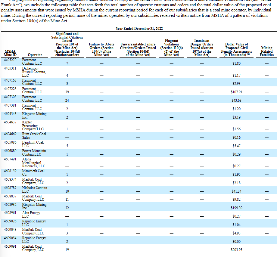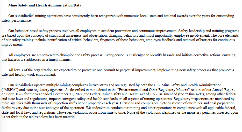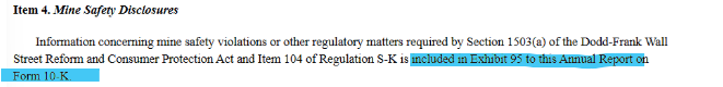 결국, 엔비디아 같은 회사들은 해당사항이 없겠죠. 그래서 Alpha Metallurgical Resources (NYSE: AMR) 같은 광산회사들은 해당 부분에 대한 내용이 많이 적혀있습니다. 내용을 봐도 별도의 Exhibit 95를 참고하라고 나오죠.