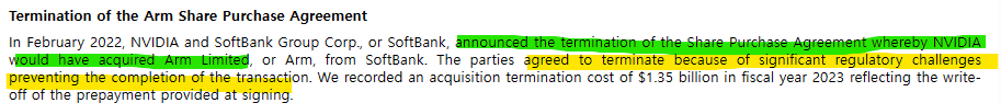 그리고 Item1에서는 'Termination of the Arm Share Purchase Agreement'처럼 볼드체로 별도로 마련해둔 부분도 있는데요. 비교적 최근인 2022년 1월의 인수 건의 종결과 관련된 부분이 기술되어 있습니다.