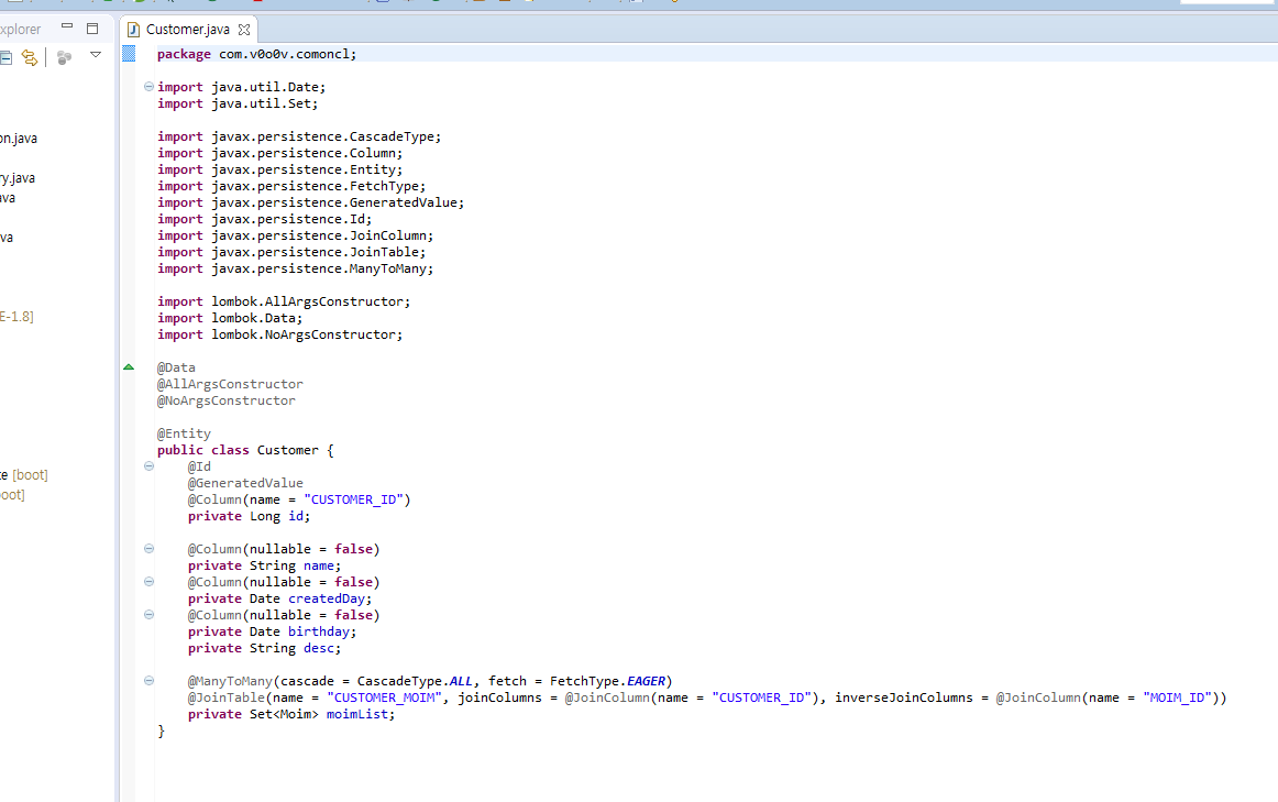 마지막으로 지금 JPA로 클래스 하나 만들던거 있는데 롬복 써서 얼마나 깔끔한지 함 보시라...