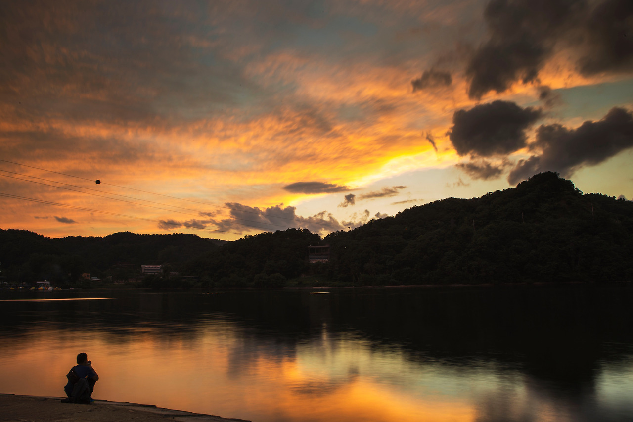 눈 앞에 대단한 풍경이 펼쳐졌다. 이는 매우 광대하고도 아름다웠으며, 남이섬의 풍경에 종지부를 찍고 있었다. 얼른 카메라 가방을 풀고 카메라를 꺼냈다. 삼각대를 놓고 놓칠 수 없는 풍경을 촬영하기 시작했다. 구름이 흘러가고 있었다. 흐르는 구름을 찍고 싶었다. 장노출의 사진을 담기 시작했다.
