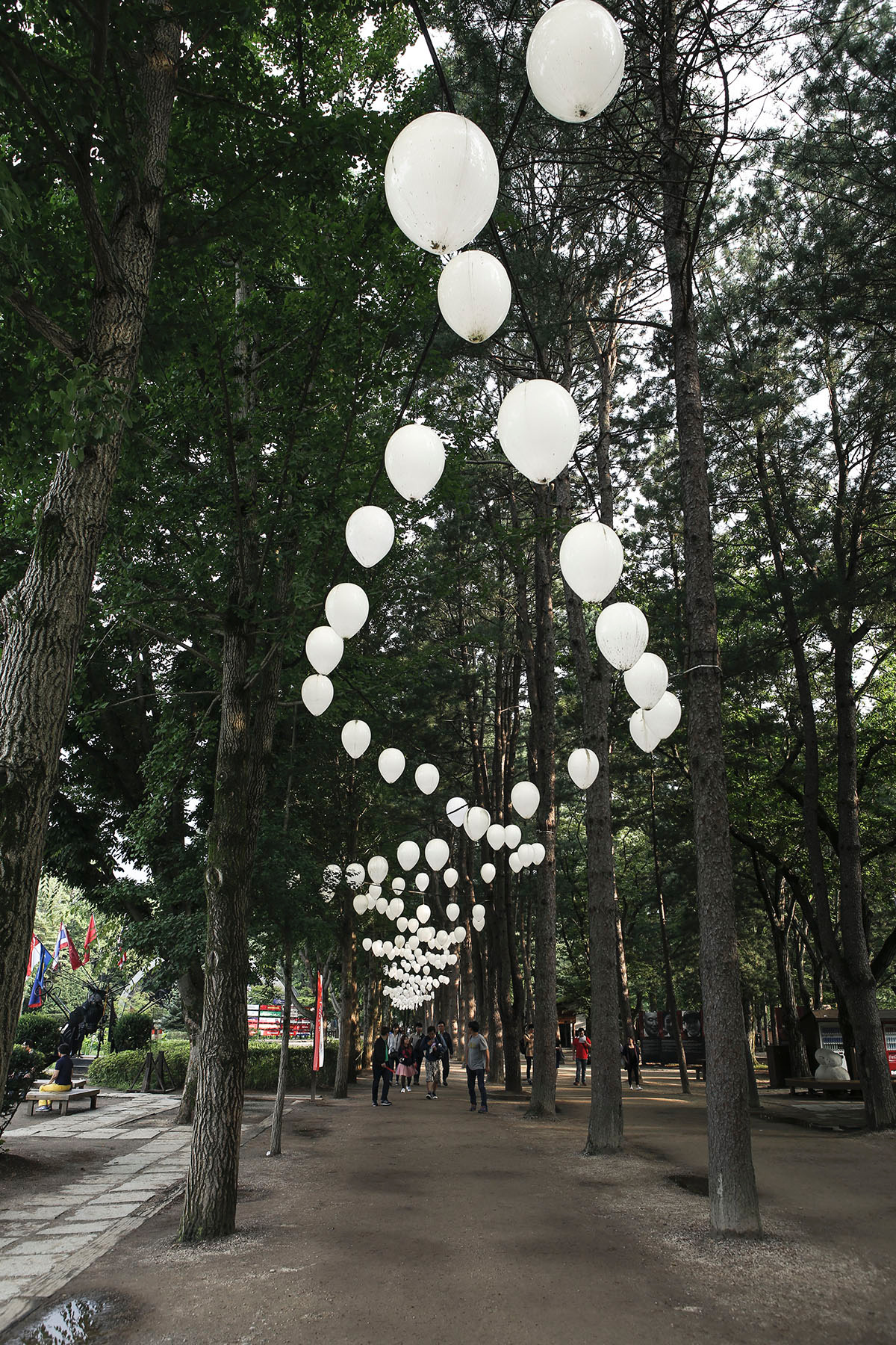 10여분 정도 걸어서 당도한 곳엔 커다란 메타쉐콰이어들 사이로 하얀 전구들이 걸려 있었다. 하늘에서 등이 부유한다. 등은 계란같이 하얗고 탐스럽다.
