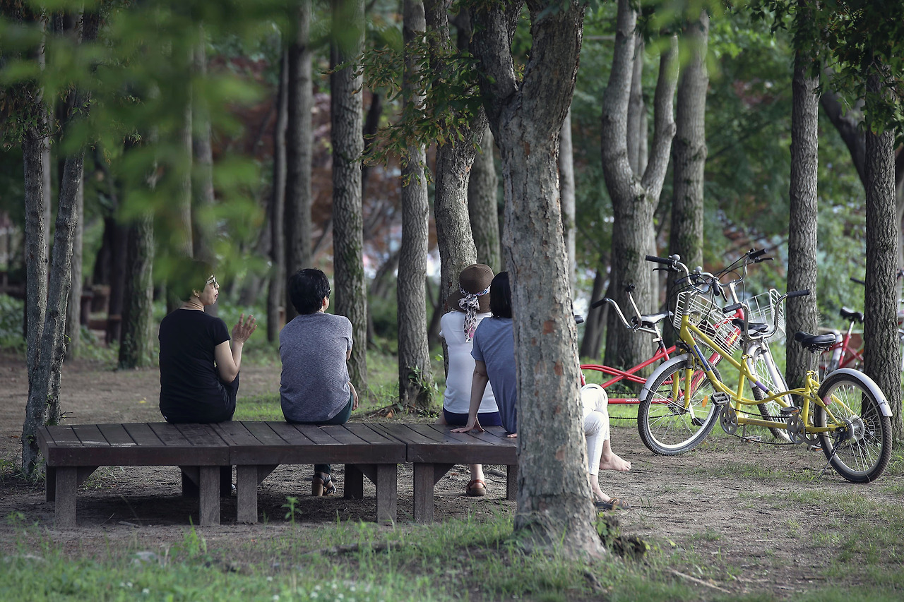 자전거를 세워놓고 한담을 나누고 있는 네명의 친구들이 있다. 멀리서는 알아들을 수 없는 목소리로 조곤조곤 하던 이야기는 끊어지고 말없이 네 명은 강을 바라본다. 흐른 세월만큼 많은 이야기는 가슴에 묻어두고, 한 공간 안에서 그들은 존재한다. 그들도 그렇게 내 곁을 지나간다.