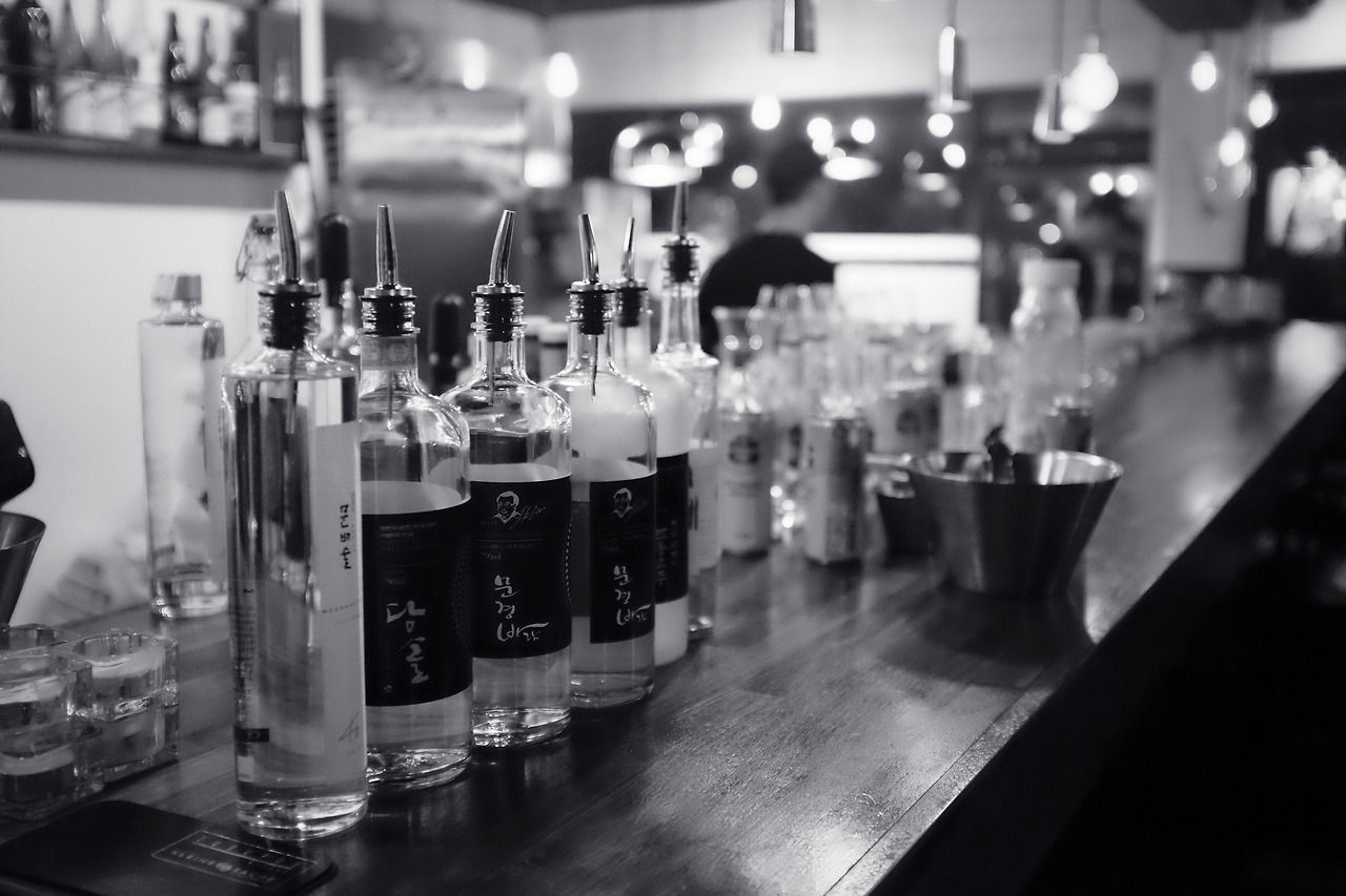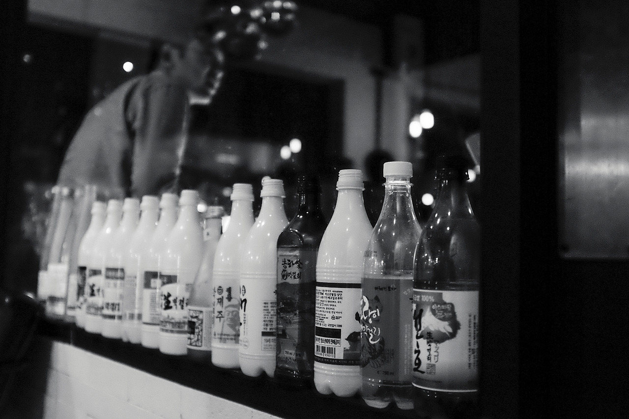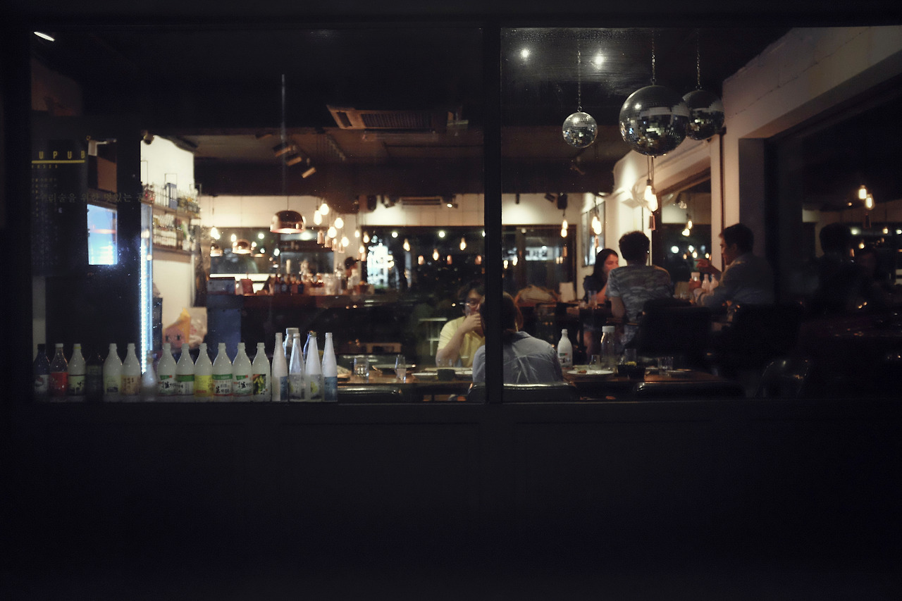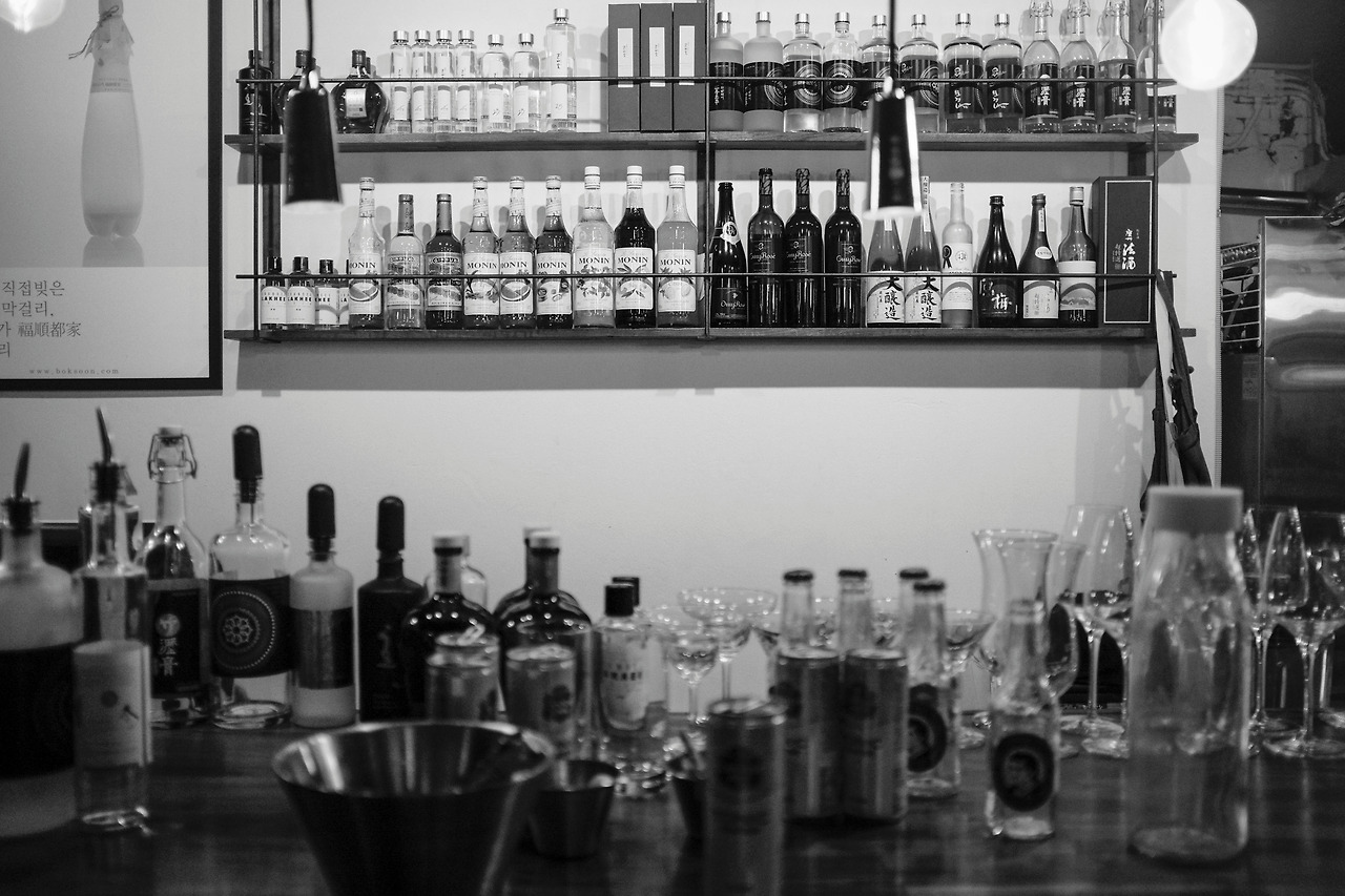 주점에서 인테리어로 놓인 술병들이 아니다. 우리 무리들이 한 병씩 야금야금 마신 병들이다. 한병도 같은 병이 없다. 그렇게 우리는 시음회를 하듯 품평회를 하듯 시간을 마셔갔다. 술은 어색함을 잡아먹고, 모두는 동화되어갔다. 술병이 늘어갈수록 우리의 관계는 또렷해져 간다.