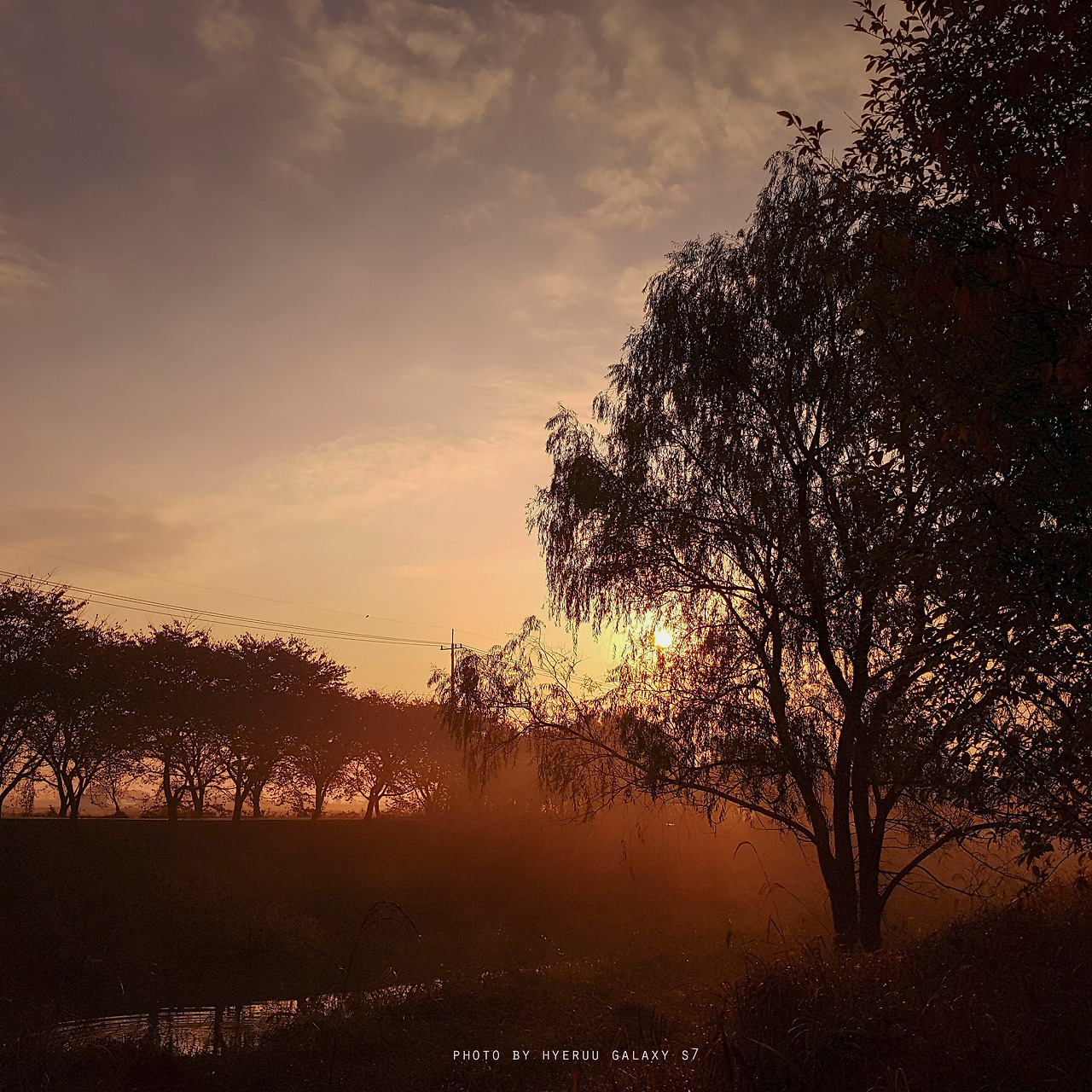 자그만 스마트폰 카메라로 산책로를 찍어본다. 저 멀리서 아련하게 아침 해가 떠오른다. 아. 아름답다. 아스라한 아침 안개 사이로 붉은 기운이 스며들듯 베어 나온다.