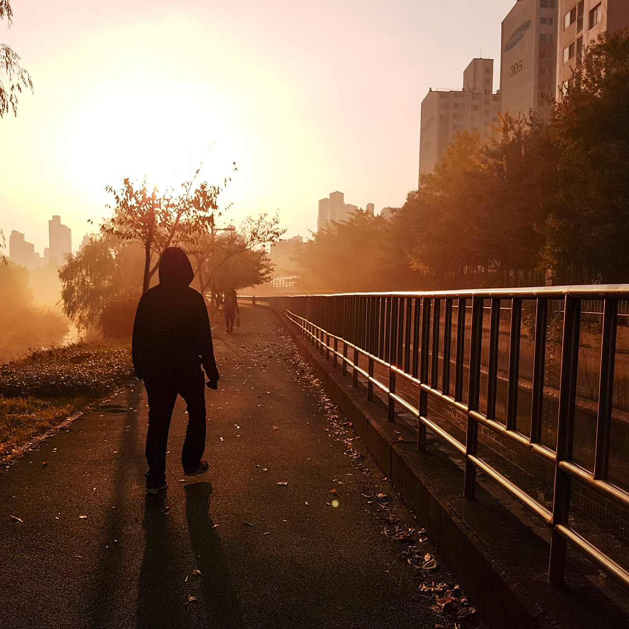 한 둘 아침 운동을 위한 발걸음들이 거세진다. 그들마저 풍경 속에 녹아내리니 아름답다. 다들 그 끝을 알지 못하는 목적지를 향해 걸어가고 있다. 우리는 어디로 걸어가고 있는가.