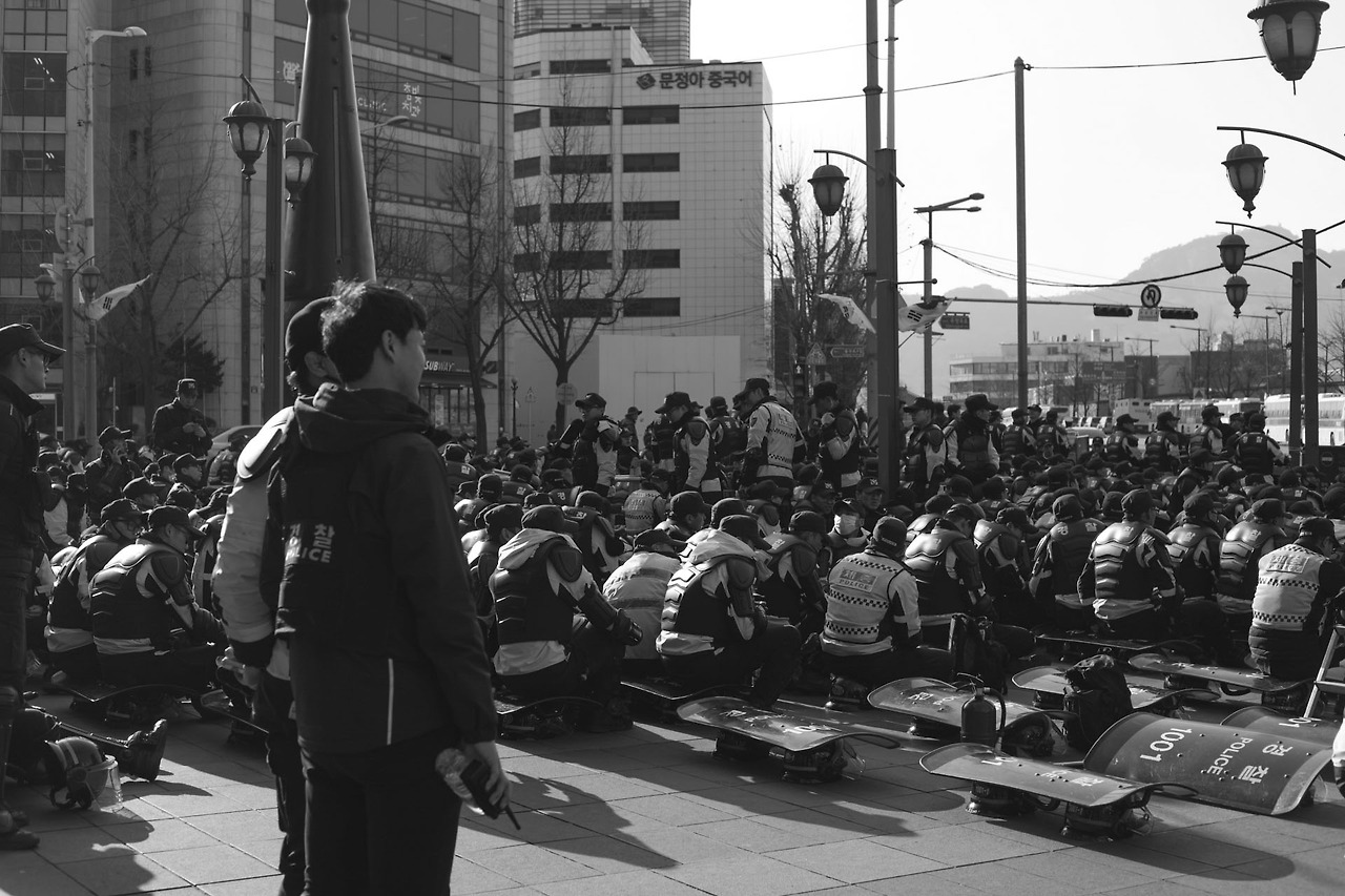 길게 늘어선 경찰들은 오와 열을 맞추어 앉아 있었다. 혹시 모를 폭력사태에 대비해 그들의 청춘을 소비하고 있었다. 가까이 다가가 보면 이제 갓 20대 초중반의 청년들이었다. 그들은 제복으로 가려진 정체성을 뒤로하고 역사의 가장자리에 위치하고 있었다. 내리쬐는 햇살과 기분 좋은 바람의 산들 거림은 그들에게 어떤 도움도 주지 못했다. 그들은 인사동을 어떻게 기억할까. 지긋지긋한 군생활의 한 장소, 아니면 그들의 청춘을 불태웠던 곳, 그것도 아니라면 죽기 전 주마등처럼 스치는 기억의 한 조각을 차지할까.