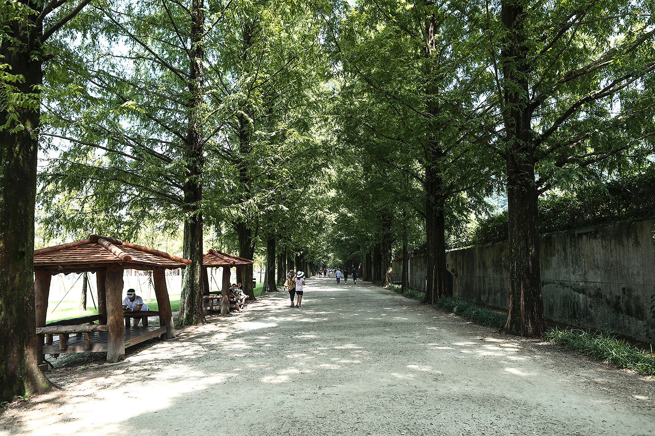 이곳은 집이었다. 나무가 대들보고, 잎들은 지붕이었다. 매미들이 울어댔다. 동굴처럼 둥글게 형성된 흙길에 그늘이 붓 터치처럼 산발적으로 퍼져 있었다. 앞을 바라보니 끝이 보이지 않는 가로수가 펼쳐졌다. 명불허전이었다. 사진가들이 그렇게 애타게 사랑하는 데에는 다 이유가 있었다.