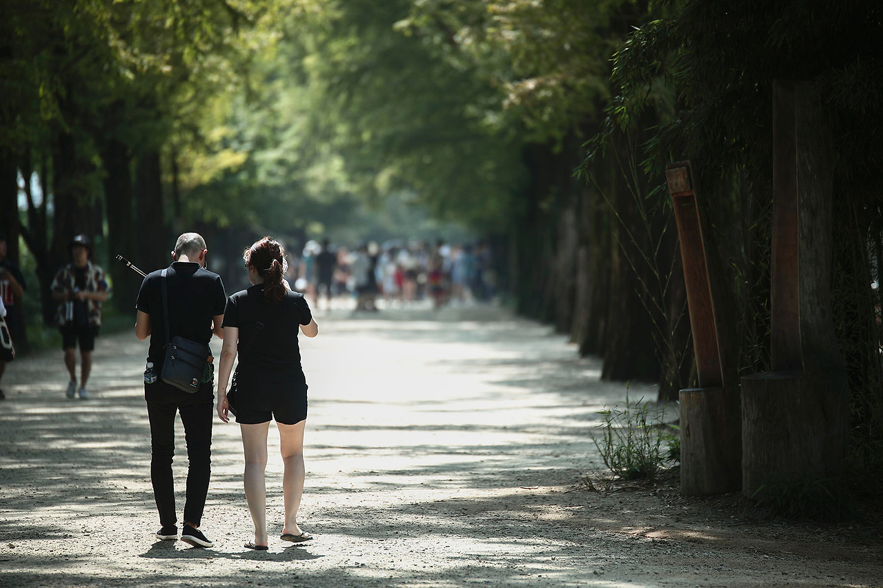 조금 더 걸어가니 숲은 깊어졌다. 그리고 높아졌다. 대나무의 울림이 점점 커져갔다. 길 주변으로 빼곡히 대나무가 서 있었다. 서 있는 대나무 사이로 또 다른 대나무가 보였다. 대나무는 끝이 없을 것만 같았다. 아마존의 자연림 같았다. 흐르는 땀에도 상관없이 이 아름다운 곳에서 삼림욕을 해야겠다는 생각에 반팔티를 또다시 걷어 올렸다.