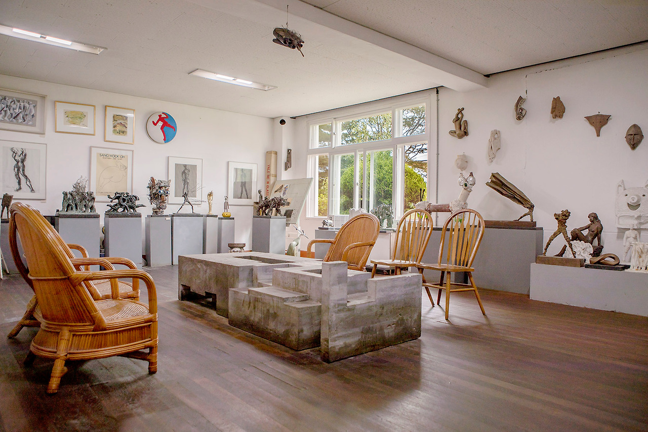 예술관의 중심에는 중앙 건물이 있었다. 과거 교실로 썼을법한 곳이었다. 아담했다. 하지만 소박했다. 그리고 안에는 어마어마한 예술품들이 있을 것이다. 건물 내에는 서양화가 정연서, 서예가 이천섭, 도예가 권순범 등 이곳을 만든 예술인들의 작품들이 전시되어 있었다.