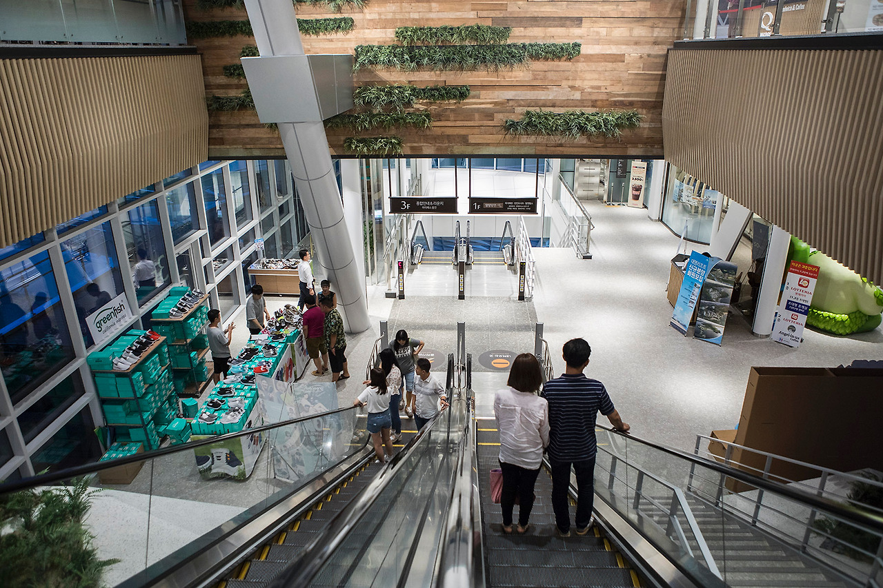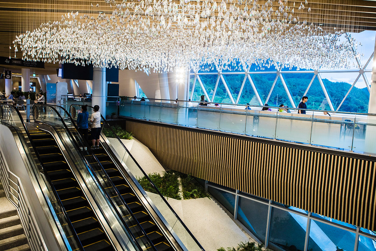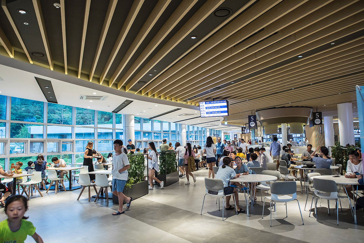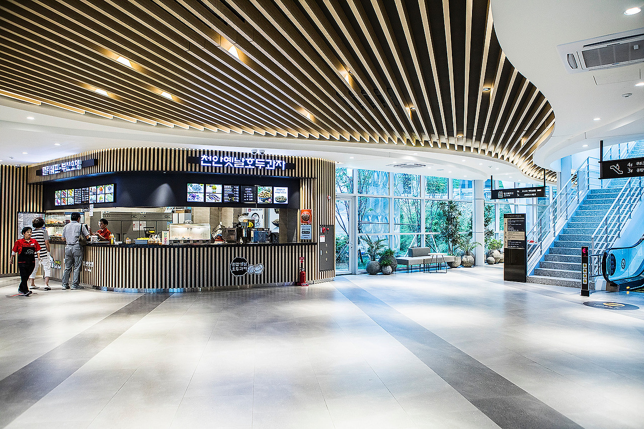 올라가는 계단은 건물 안쪽으로 연결되어 있었다. 안쪽에 들어가니 뭐랄까 휴게소가 아니라 백화점이나 쇼핑몰같은 느낌이었다. 이거 휴게소라고 하기에는 생소한데. 그래도 너무 새롭군. 붉은 조명들 사이로 에스컬레이터를 타고 2층으로 올랐다. 에스컬레이터 위로 휘황찬란한 장식이 눈에 띄였다. 이제 휴게소 트랜드도 이런식으로 바뀌는것인가.