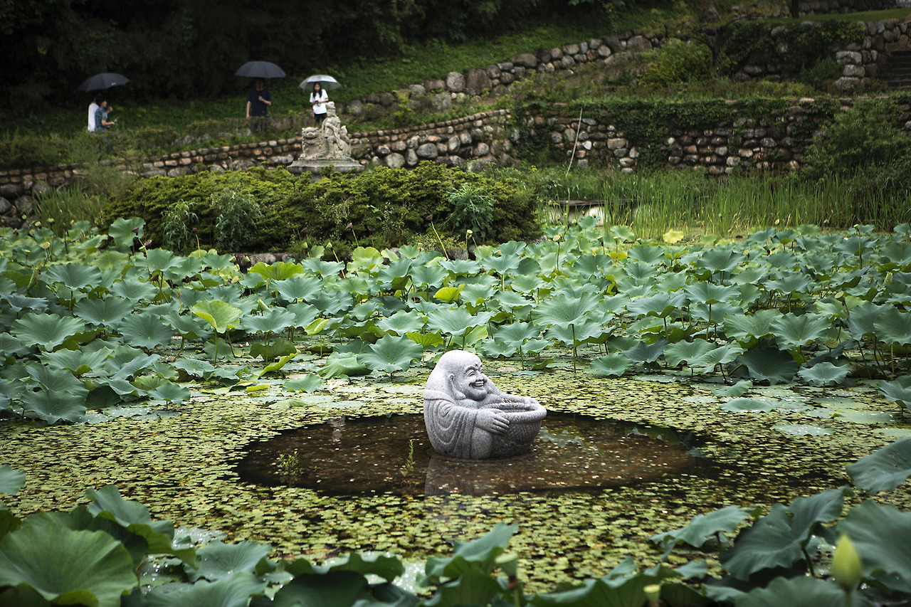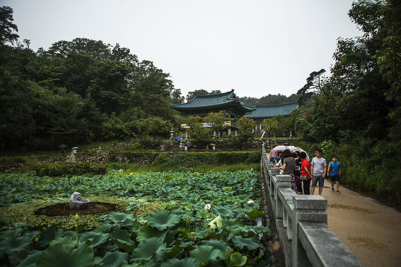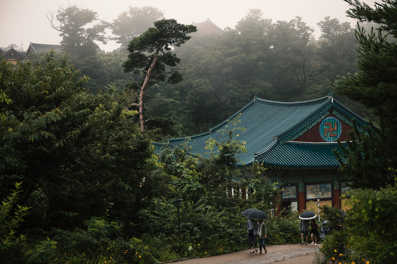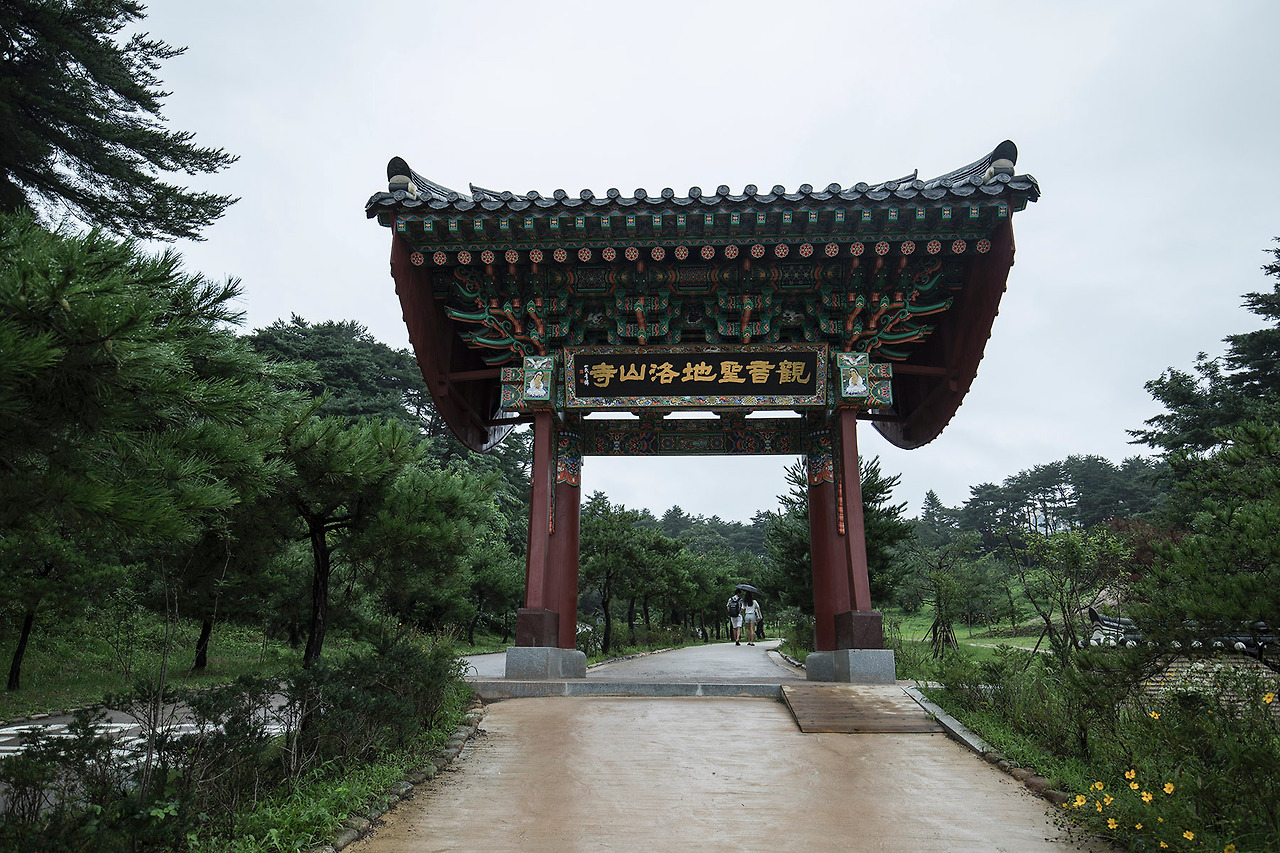 숙소에서 하룻밤을 보내고 낙산사로 출발했다. 아침부터 비가 부슬부슬 쏟아졌다. 여행을 다니면서 이렇게 비가 부슬거리면 참 애매하다. 비가 아예 많이 내리면 여행을 포기하고 실내에서 시간을 보내면 된다. 비가 아주 조금만 내릴 경우에는 모자를 쓰고 움직이면 된다. 하지만 어중간하게 내리기 시작하면 우산을 쓰기도 안쓰기도 애매하다. 특히나 카메라를 들고 다니기에 보통 우의를 입고 다니는데, 여름 같은 경우에는 우의를 입고 다닐 경우 찜통더위의 위엄을 느낄 수 있기 때문이다. 그래도 여기까지 왔는데 그냥 돌아갈 수 없었다. 낙산사에 당도. 하지만 휴가철이라 그런지 꽤나 많은 차들이 낙산사 정문에 줄을 서 있었다. 낙산사에 몇 번 왔던 경험을 살려 낙산사 후문 정류장으로 향했다. 후문은 정문에 비해 한가했다. 주섬주섬 우의를 챙겨 입고 문을 들어섰다.