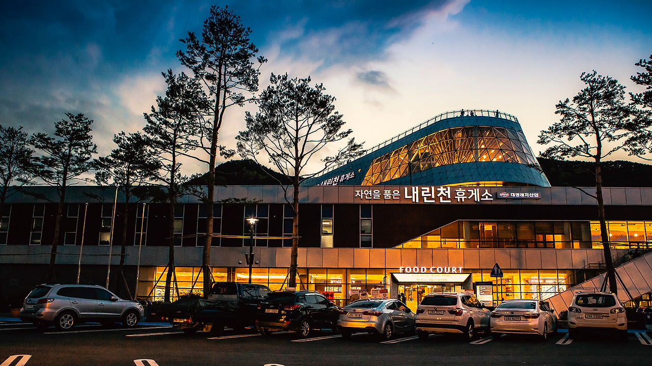 각자에겐 여행의 스타일이란 것이 있다. 개인적으로 목적지에 빨리 도착하려 하는 성격은 아니다. 여정의 즐거움을 믿기에 휴게소도 들르고, 지나가다 팻말을 보고 갑작스레 딴 길로 새어 새로운 곳을 구경도 하고 가는 편이다. 그래서 이동에 꽤나 많은 시간이 걸린다. 이번 여행 역시 비도 오고 몸도 찌뿌둥하여 휴게소마다 들르면서 천천히 이동했다. 그러다가 마지막으로 인제IC부근 내린천 휴게소에서 쉬게 되었다.
