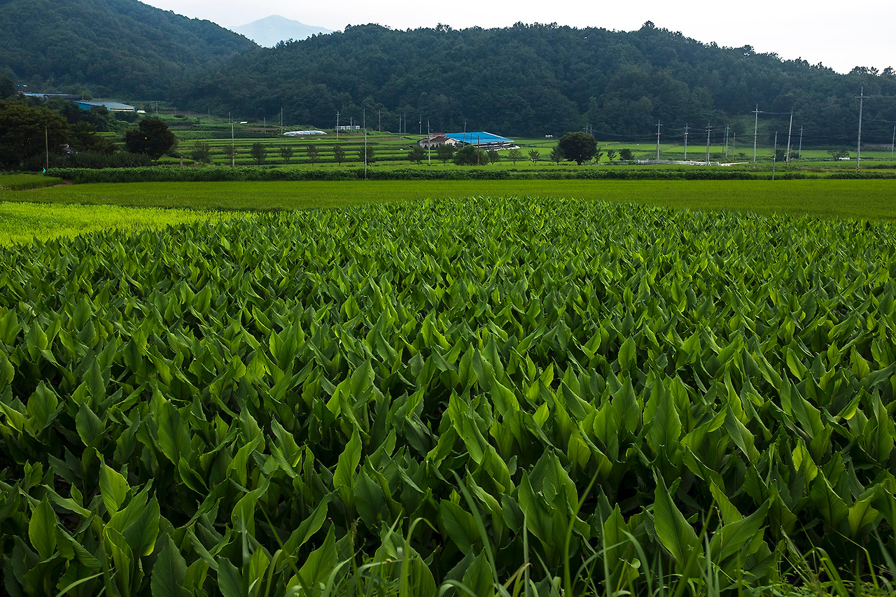 마을 저편에는 울금 밭이 있습니다. 춤을 추는듯한 모양새를 가진 울금들이 바람 소리에 귀 기울이고 있습니다. 주로 벼를 생산하는 이곳이지만, 간단히 작물들도 이렇게 재배한다고 합니다. 울금 밭의 푸르름이 동네를 온통 뒤덮습니다. 자연의 물감은 언제나 아름답습니다.