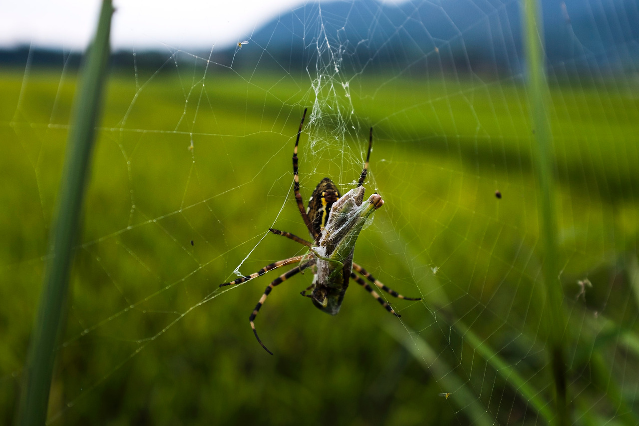 그래도 자연의 법칙은 거스를 수 없는 거겠지요. 거미 한 마리가 메뚜기를 실로 꽁꽁 묶고 있습니다. 잔인해 보이지만 이런 자연의 법칙이 없다면 이 동네는 물론이고 세상이 돌아갈 수가 없을 겁니다. 이러한 자연의 법칙을 눈으로 볼 수 있음에 감사해하는 날이었습니다.