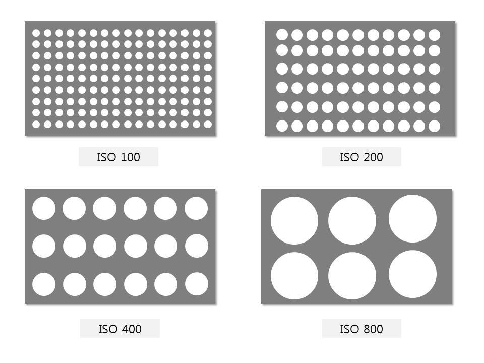 위의 이미지 하나로 감도의 모든 설명은 끝난다. 사진이 찍히는 판에 저렇게 촘촘한 구멍들이 있다고 가정해보자. 저 구멍들로 빛이 들어온다. 들어오는 빛들이 사진들을 만든다.