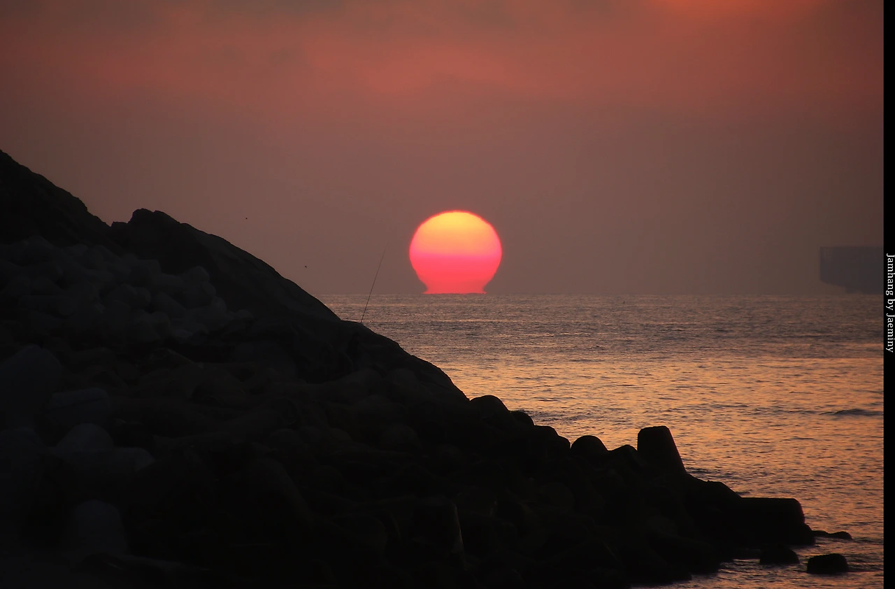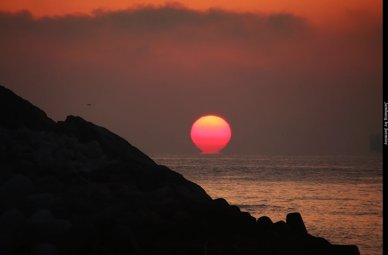하지만.. 수평선 자욱한 구름 들 사이로 수평선을 치고 나오는 태양을 보기는 여간해서 쉽지가 않다.