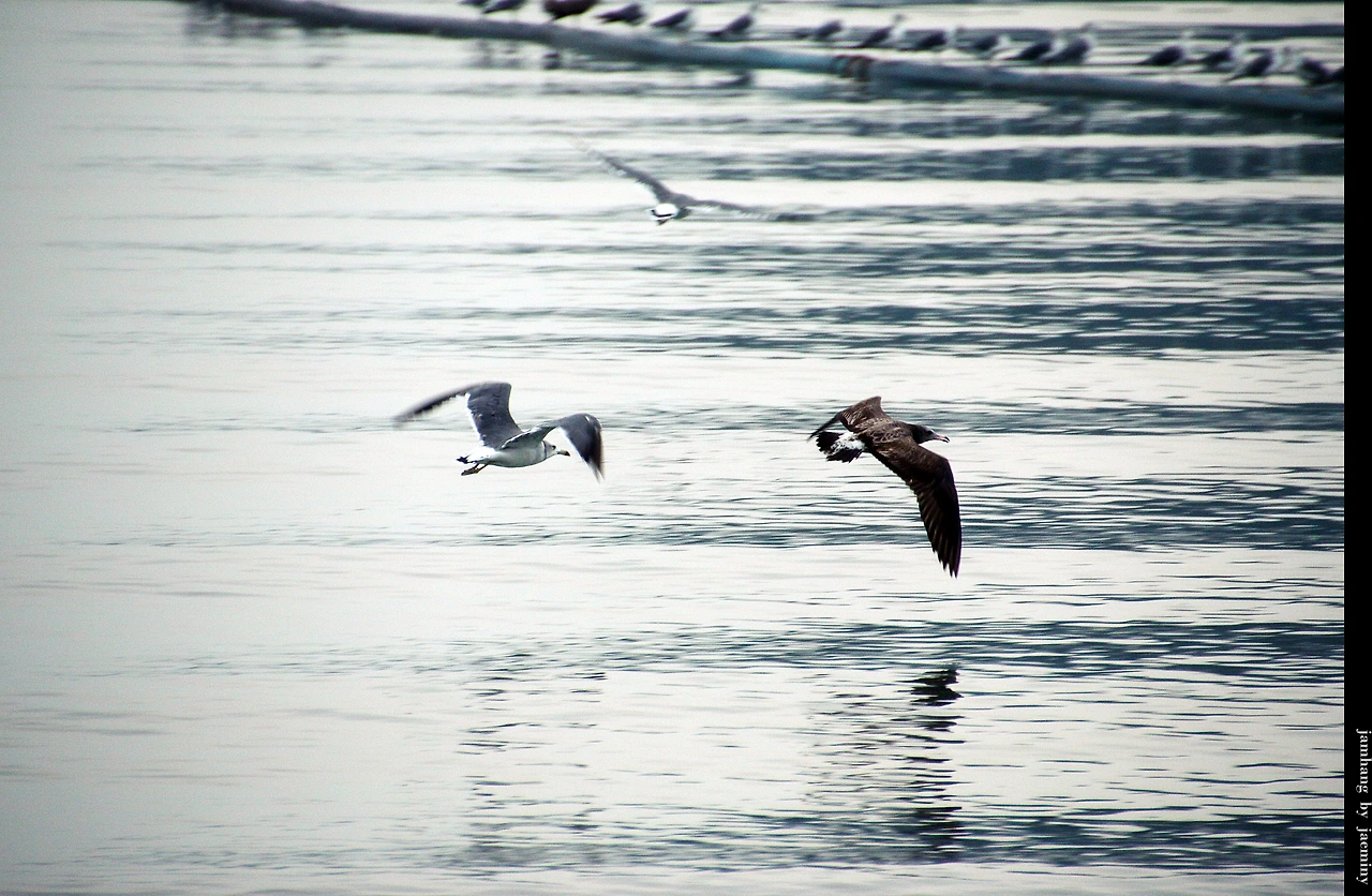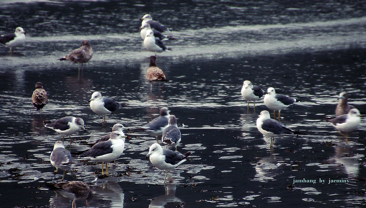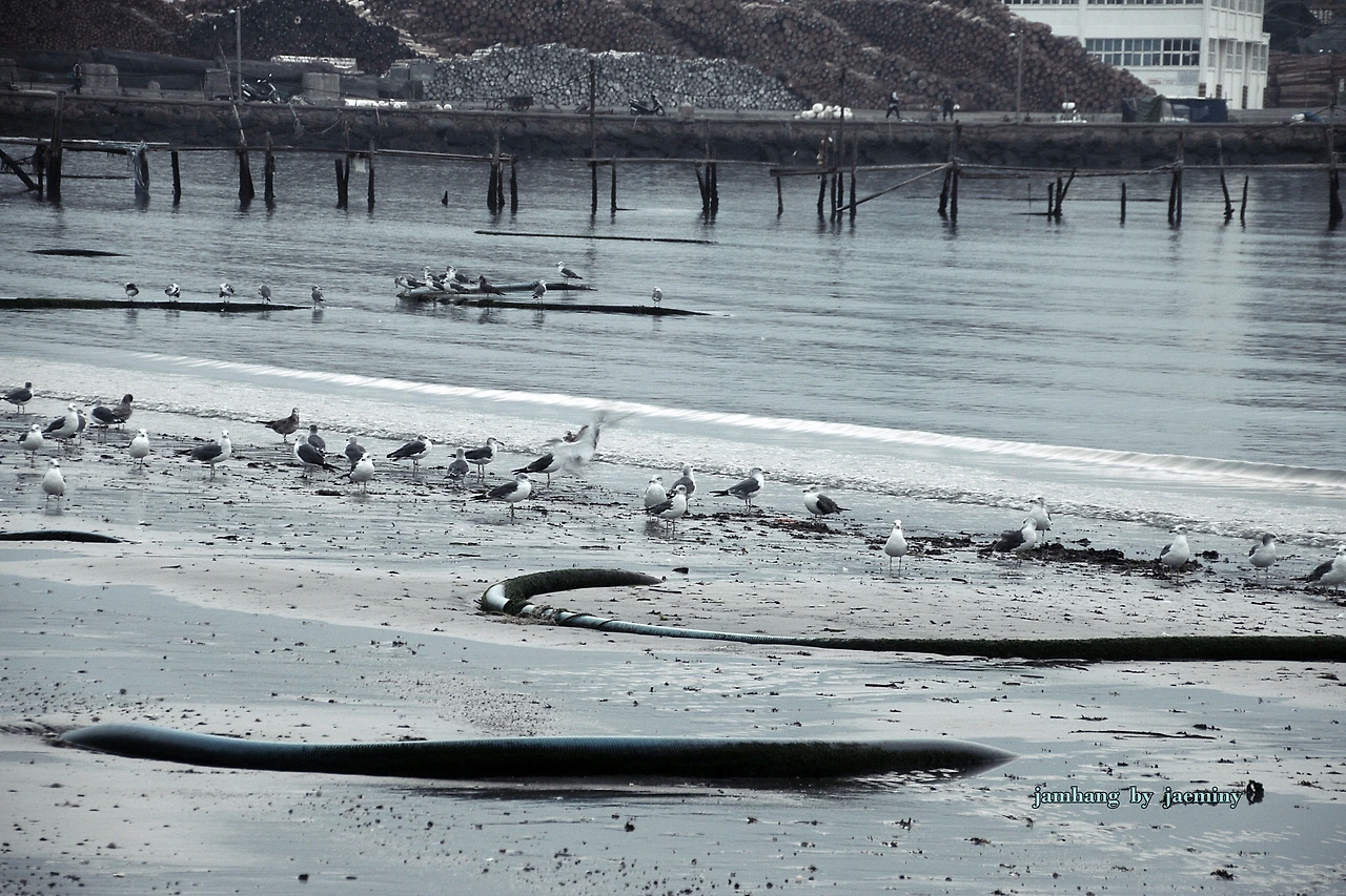 조용한 바닷가를 수놓은 수 많은 갈매기!!