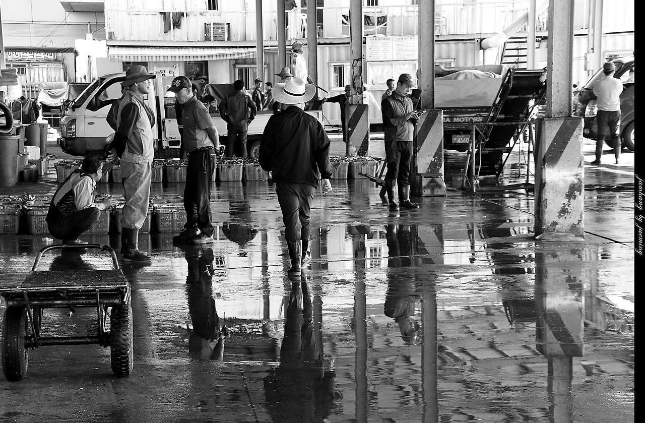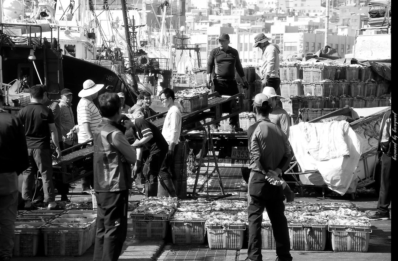 이른 아침의 자갈치 시장에는 어디를 둘러봐도 그냥 서있는 사람이 없다.