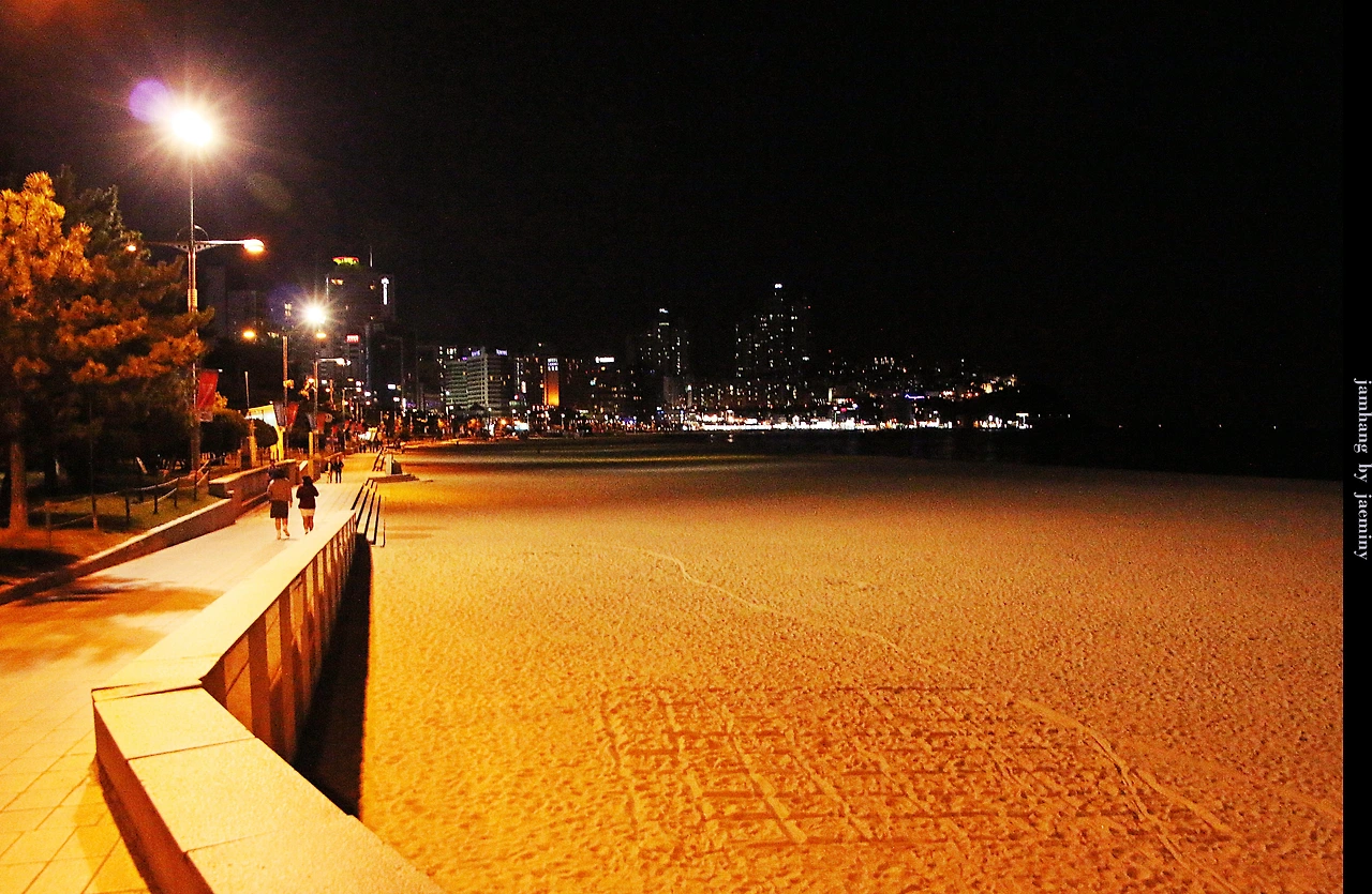 해가 떨어진 해운대는 연인들의 데이트 장소..!!
