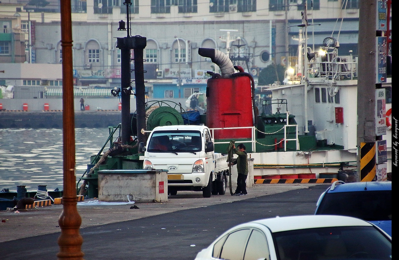 일행들과 함께 아직 날이 밝지 않은 이른 아침 장승포 포구를 만난다.