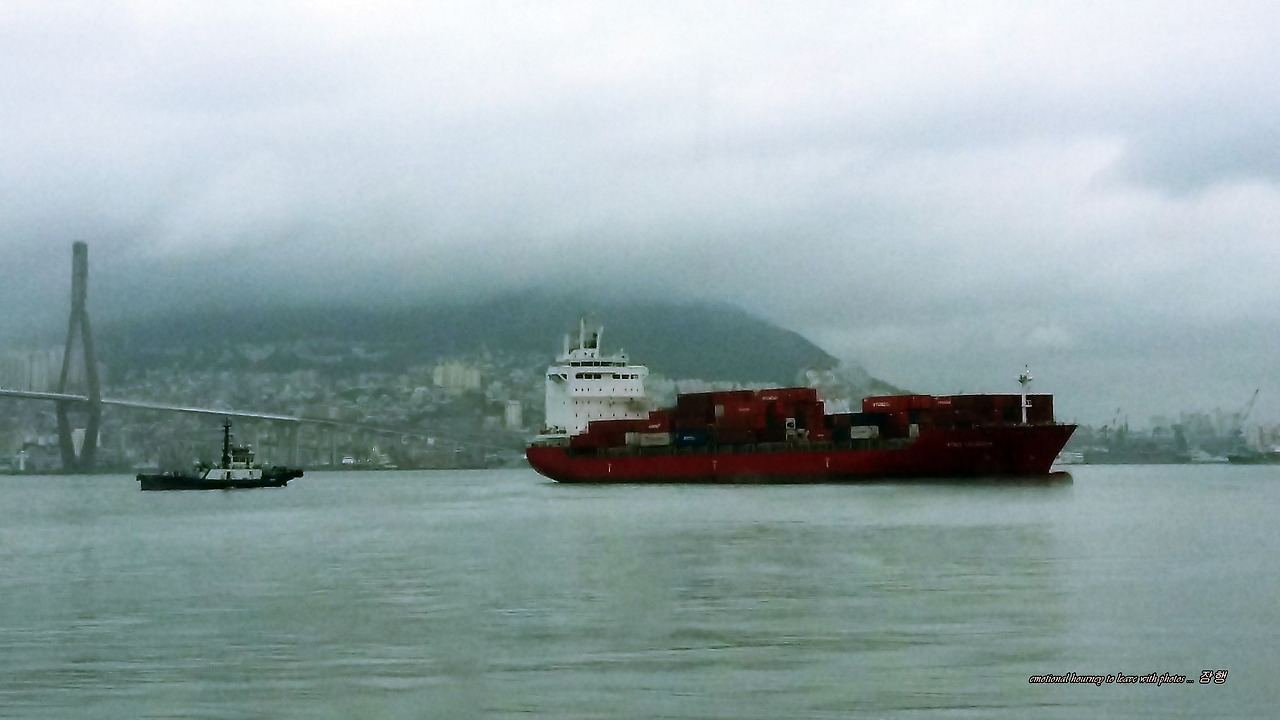 오늘처럼 비와 함께 물안개 자욱한 부산항 자성대부두의 은은한 바다 풍경 역시 그 못지않다.