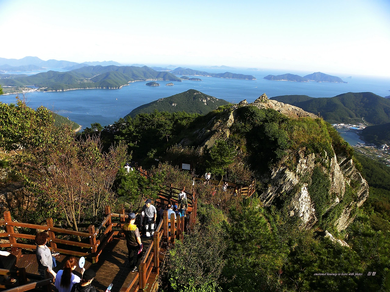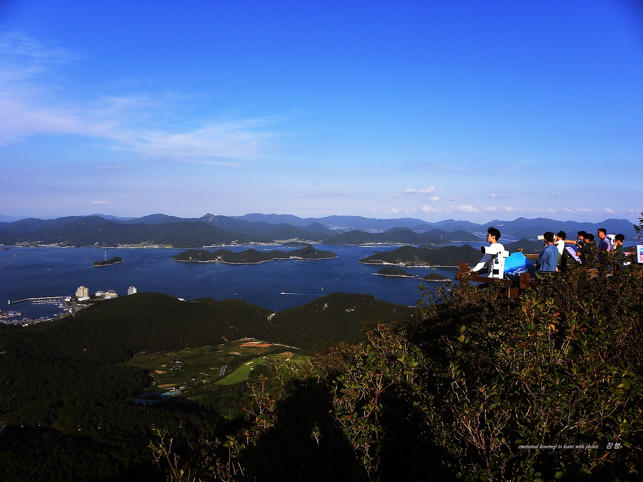 지인들과 다정하게 인증샷을 찍고.. 겨우 두리번 거리며 미륵산 정상에서 사방으로 펼쳐진 한려수도의 아름다운 모습에 넋을 놓아본다