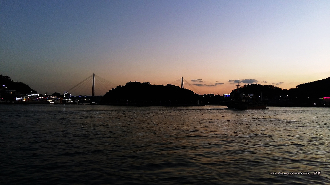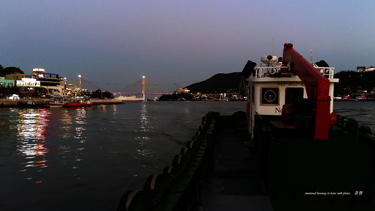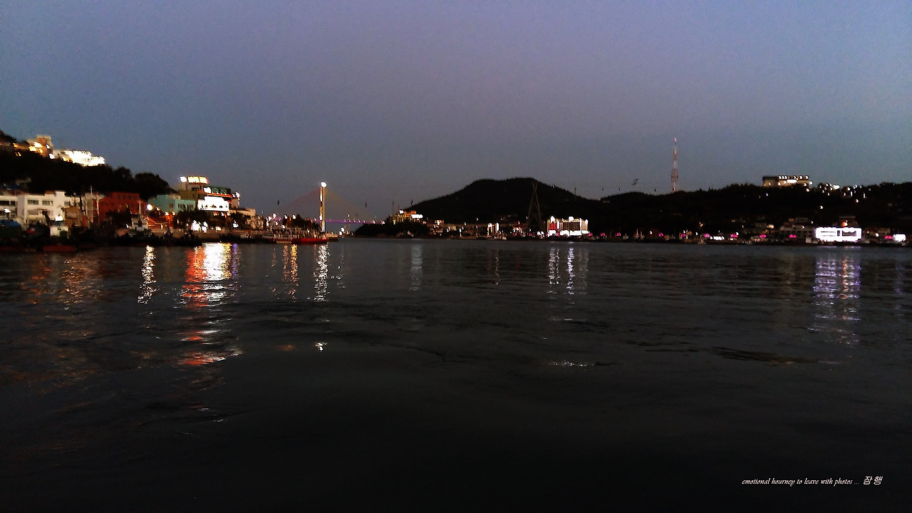 멀리 아기자기한 불빛들이 자리잡은 여수항의 모습이 드러나기 시작한다.