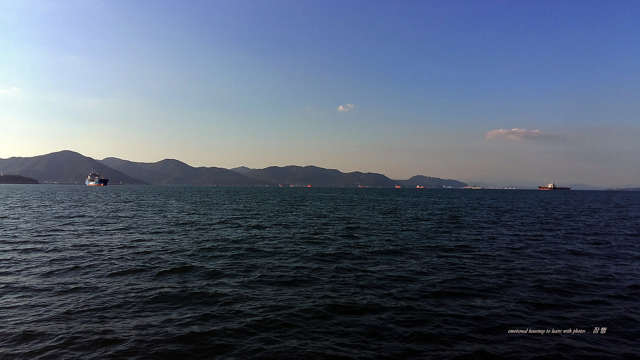 여수 바다의 수평선을 향해 나아가는 통선에 부딪혀 하얗게 부서지는 포말의 잔상과 높고 짙도록 파아란 하늘 그리고...