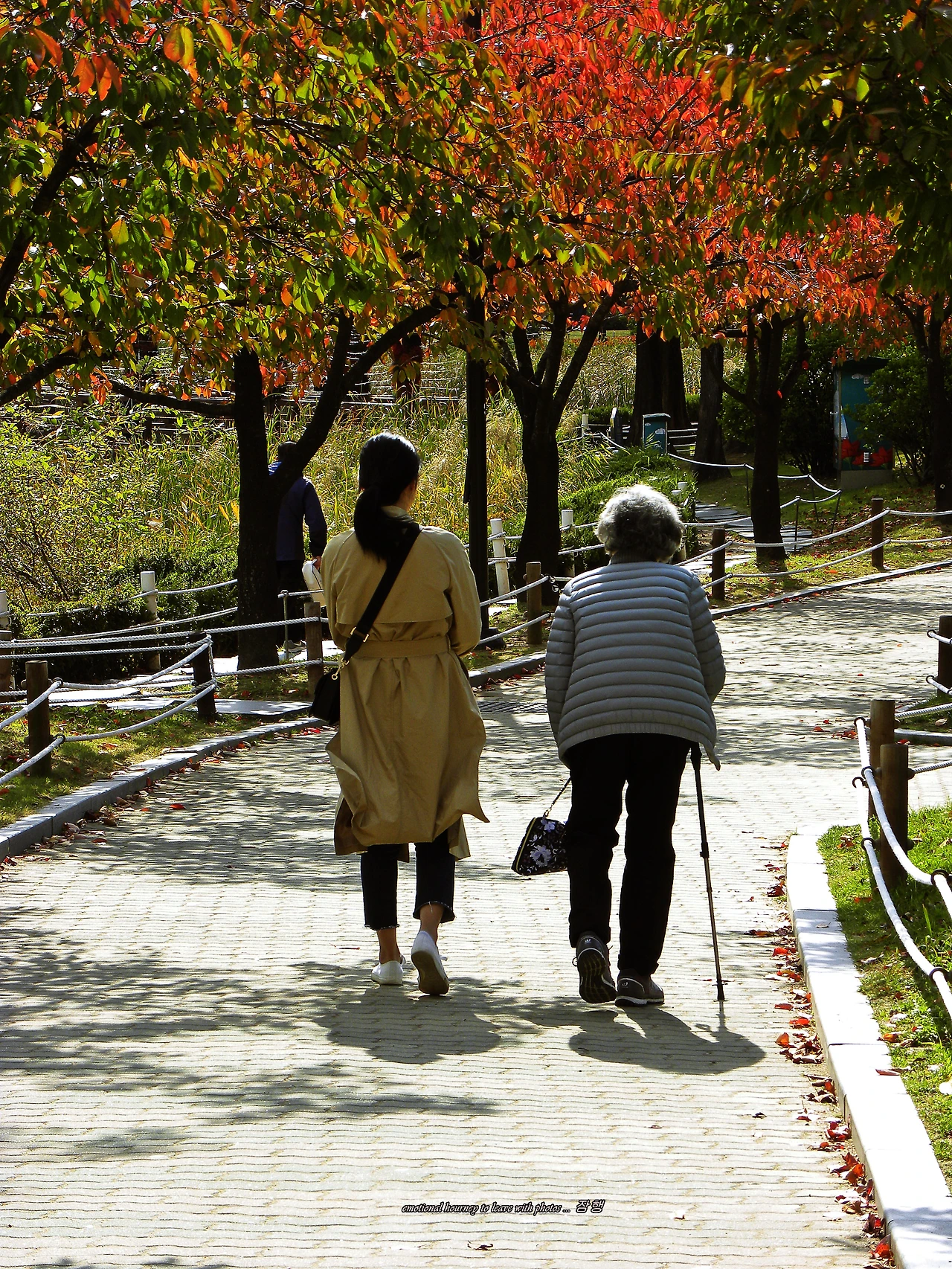 따사한 햇살속으로 불어오는 가을바람을 느끼며 도란도란 담소를 나누며 걸어가는 할머니와 손녀의 가을날