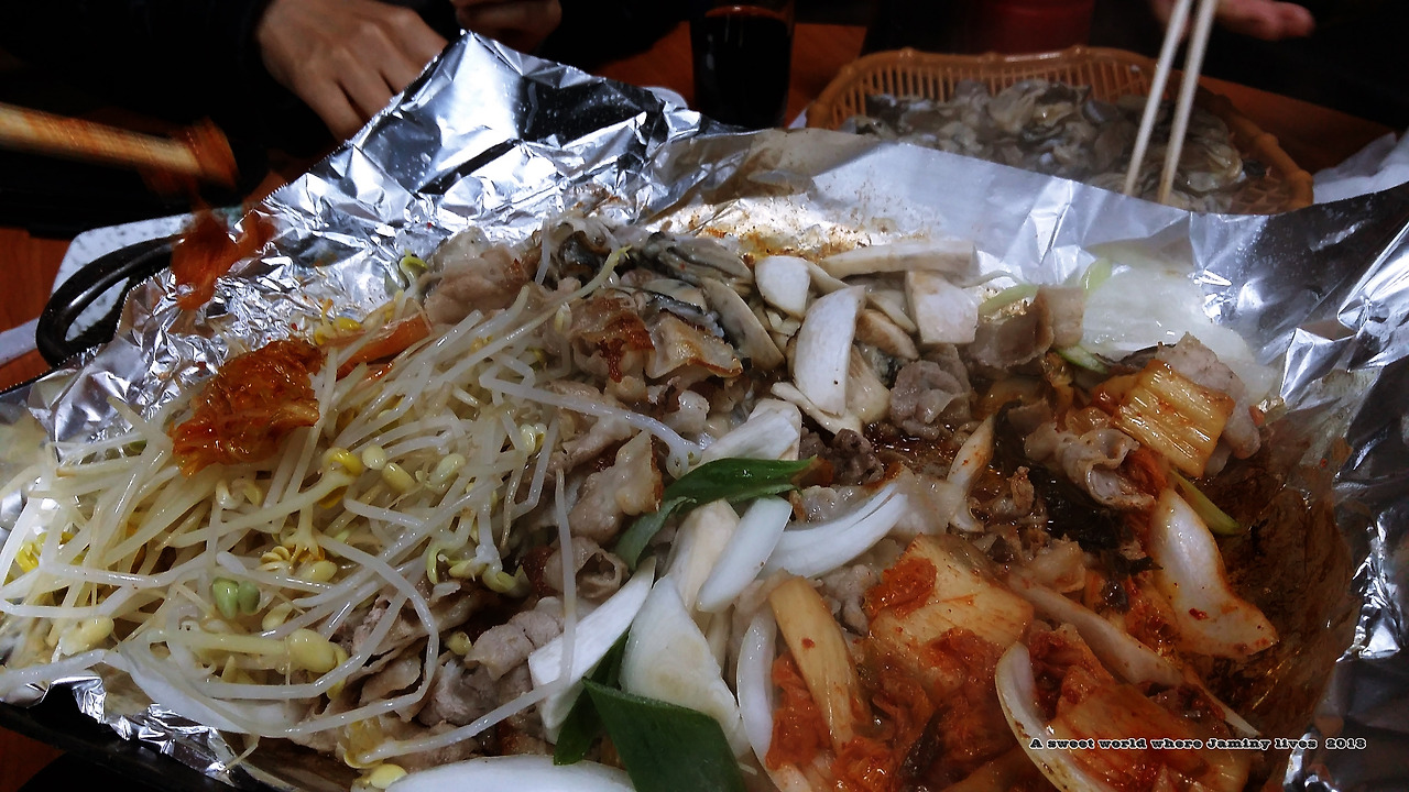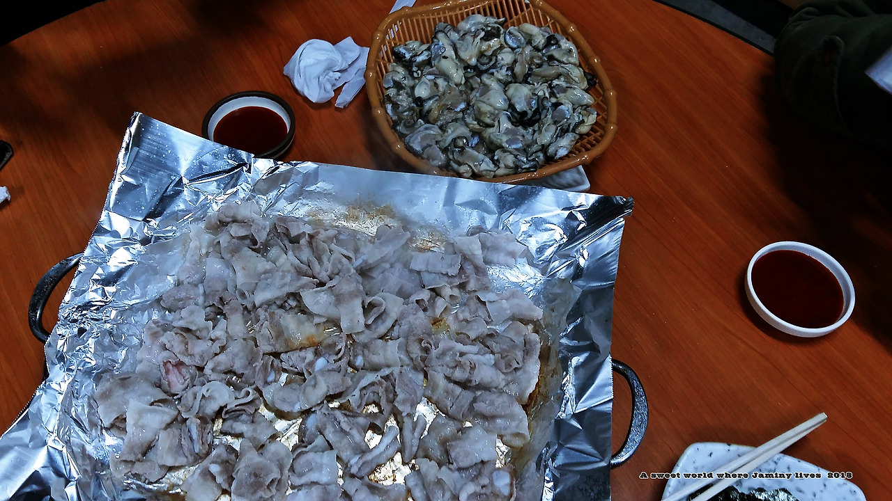 그닥 좋아하지 않는 난... 삽겹살과 함께 굴을 구워 먹는... 제법 맛도 좋고 삼겹살과 어울리는 고소하고 상쾌한 맛이