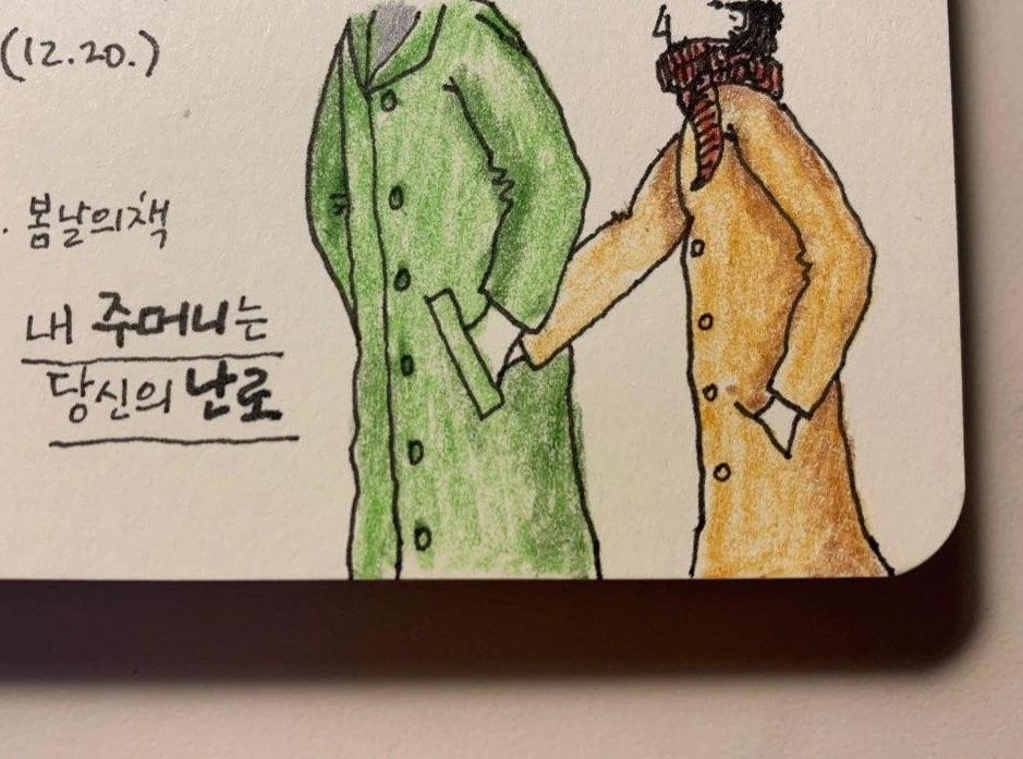 얼마 전 시아버님이 우리 부부 사진을 인화해서 보내주셨다. 남편은 그 사진을 일기장에 붙이더니 펜을 들고 가장자리에 정성껏 그림을 그리기 시작했다. 근사한 액자 모양이었다. 그리고 무어라 끄적이길래 보여 달라고 졸랐다. 남편은 30주년 기념 헌사를 써 놓았다. 서로 다른 결을 가진 사람 둘이 만나 힘든 시간을 거쳐 여기까지 왔고, 이제는 아주 편안하고 잘 맞는 우리가 되었다고. 오랜 시간이 지난 후 오늘을 떠올리며 고백하게 될 내 모습이 그려진다. 모든 게 감사했다고, 덕분에 잘 지나왔다고 고개를 끄덕이고 있을 것이다. 그때 내 마음은 잘 있었고, 고통 중에 있는 타인들의 마음도 잘 있기를 간절히 기도하는 그런 시간이었다고 고백하며 말이다. 8년의 긴 시간 동안 암 투병을 하며 고통을 지나오신 이해인 수녀님이 그러셨다. '내가 오늘도 기꺼이 안아야 할 행복'은 바로 앞의 모든 것들이라고. ‘서로 사랑하면 언제라도 봄’이라고도 하셨다. 아끼는 책 <스토너>에서 가장 좋아하는 문장도 사랑에 대한 이야기다.