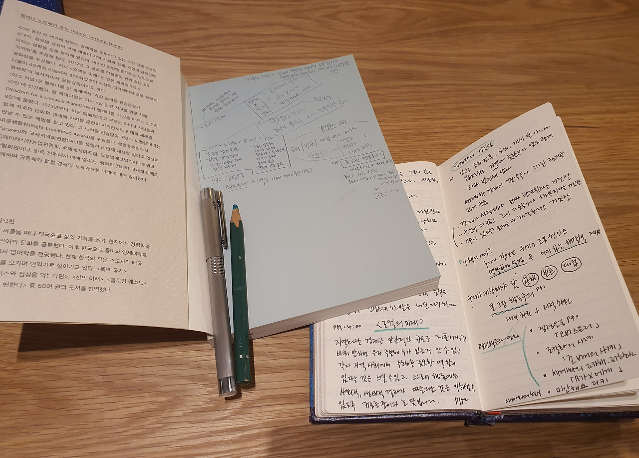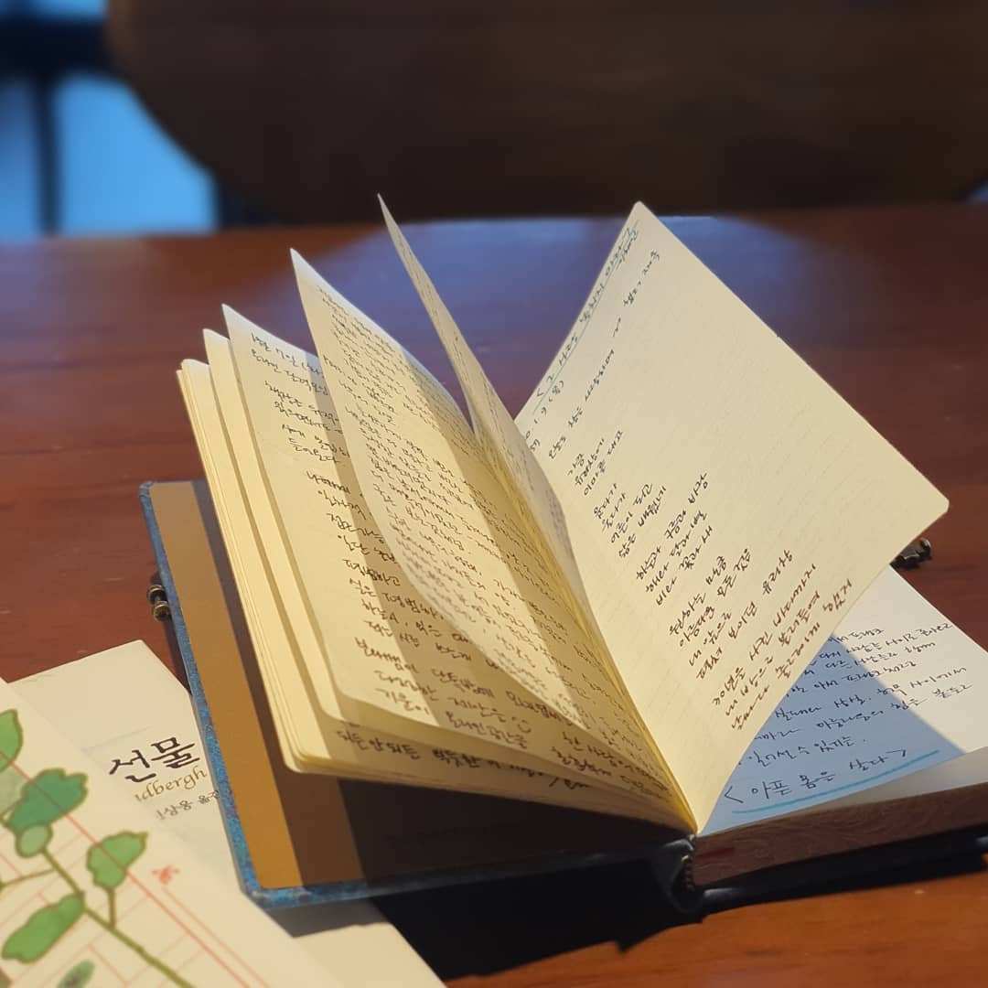 2020년 50세를 기념하며 일기를 쓰기 시작했다. 마흔아홉, 홀로 독일 여행을 하며 기념으로 산 고풍스러운 노트를 꺼냈다. 아까워서 쓰지 못하고 있었는데 특별히 기념하고 싶은 올해의 일기장으로 딱 맞는다고 생각했다. 책으로 삶을 가꾸는 사람이라는 북 코디네이터의 정체성에 맞게 매일 책을 읽고 사유하며 삶을 가꾸는 일상을 기록하고 있다.