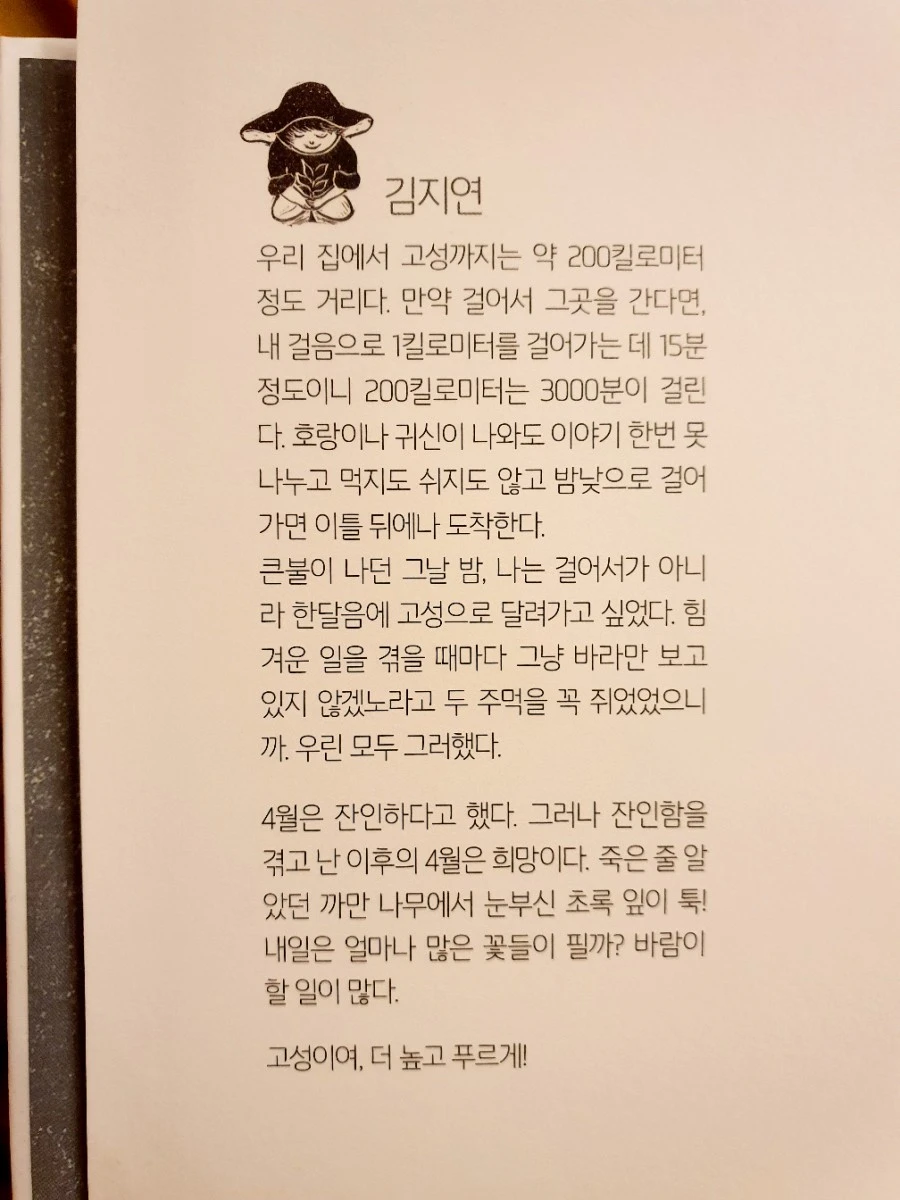 책을 주문하고 기다리는 동안 작가님의 마음을 헤아려보았다. 제일 먼저 읽은 작가 소개 글에 고스란히 그 마음이 들어 있었다.