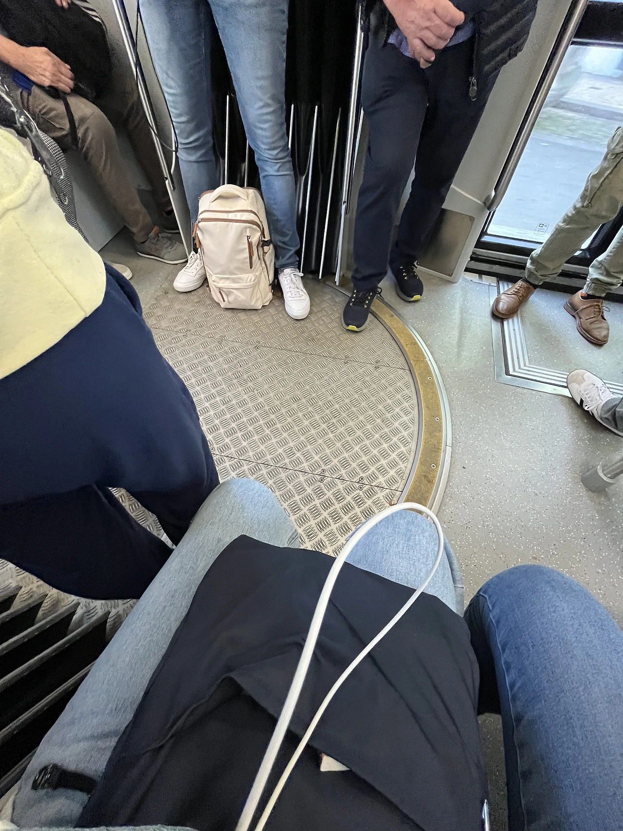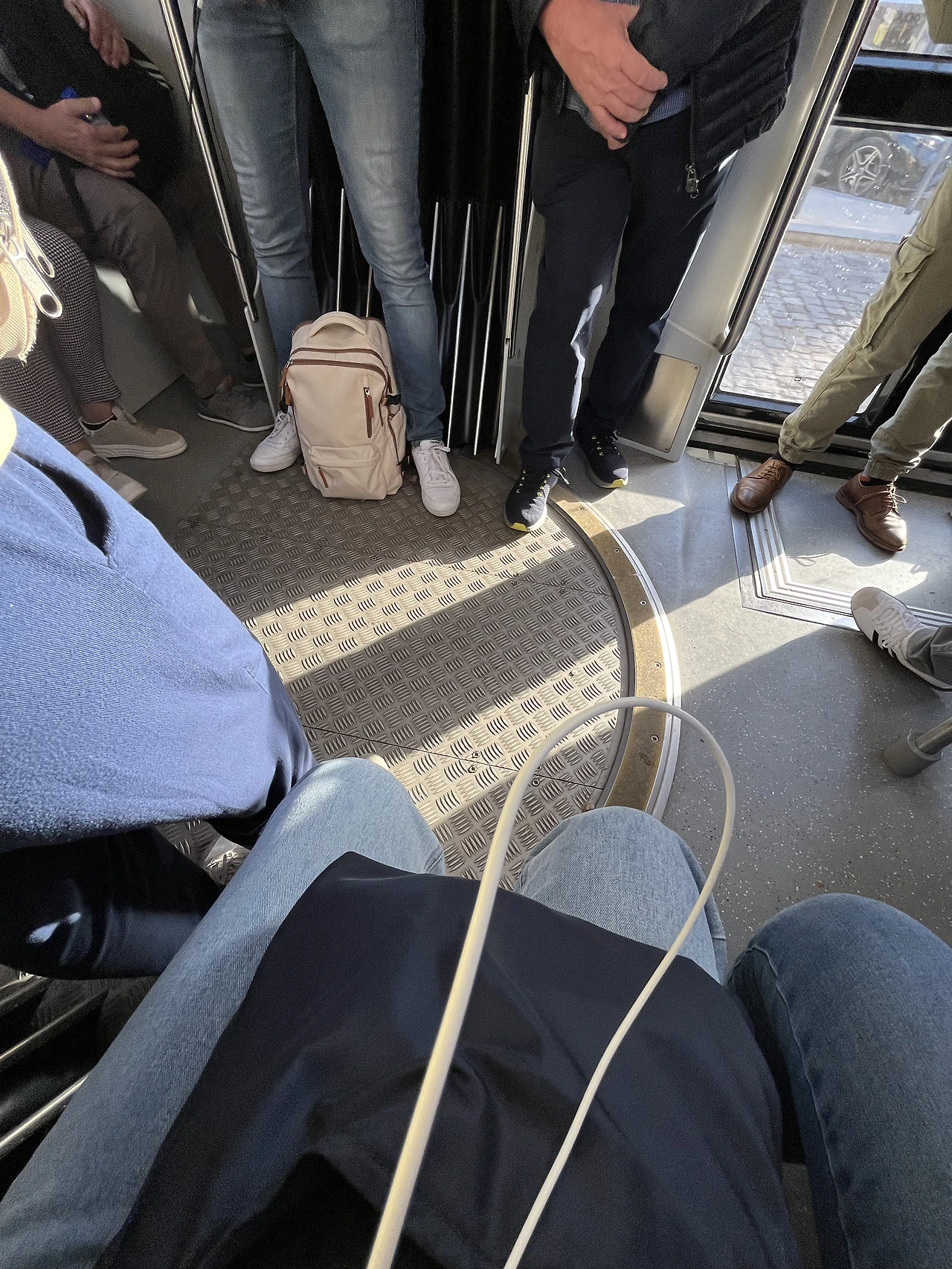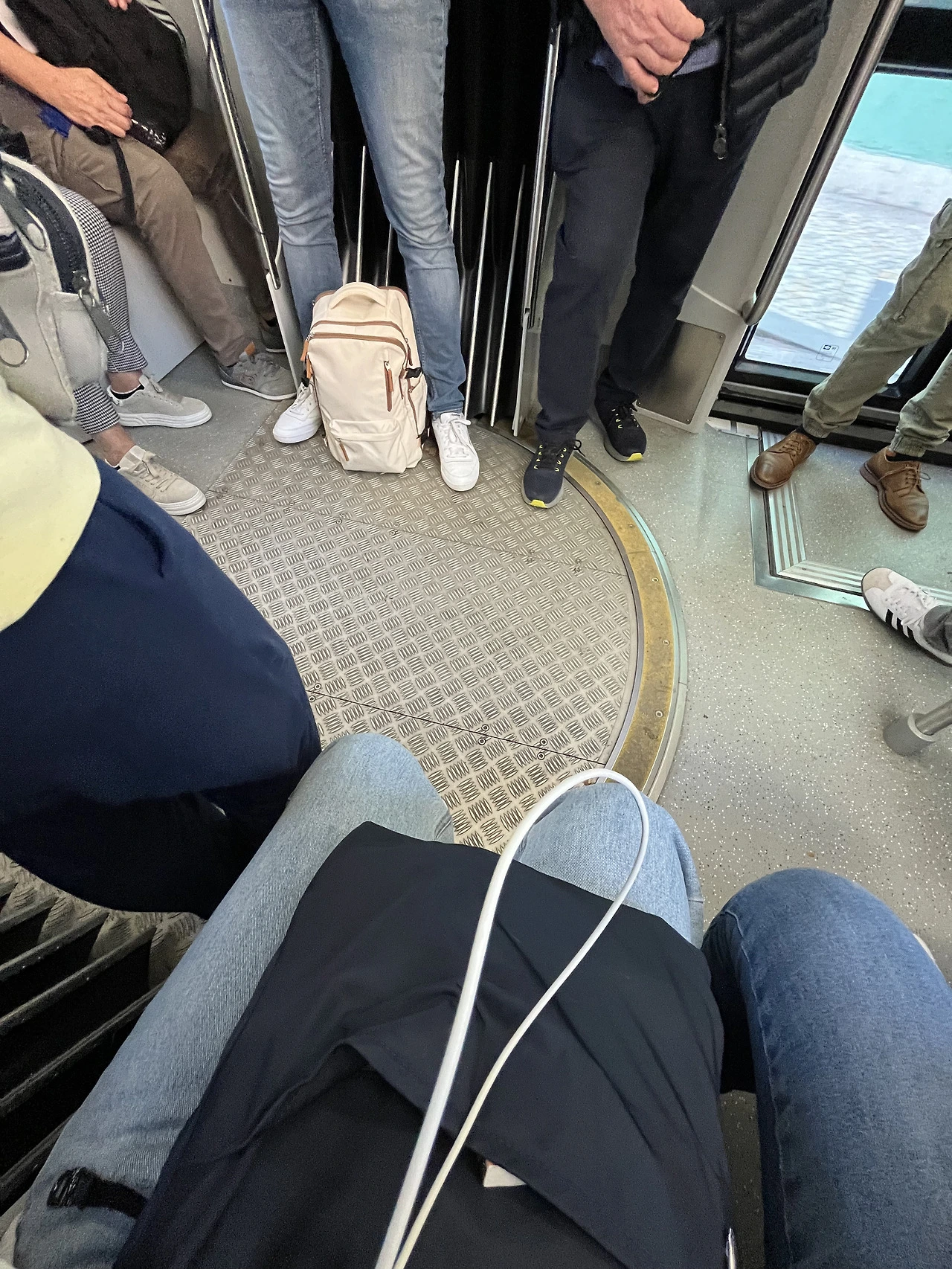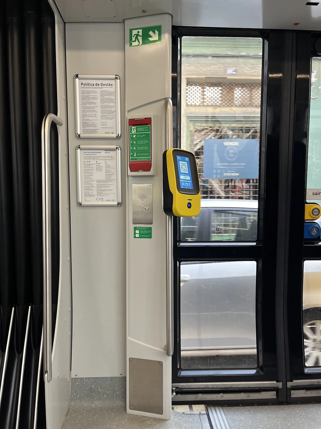 트램도 카드 태그기가 있다. 버스와 마찬가지로 내릴 때는 태그할 필요는 없다. 대신 내릴 때 출입문에 있는 버튼을 눌러 문을 열어야 한다.
