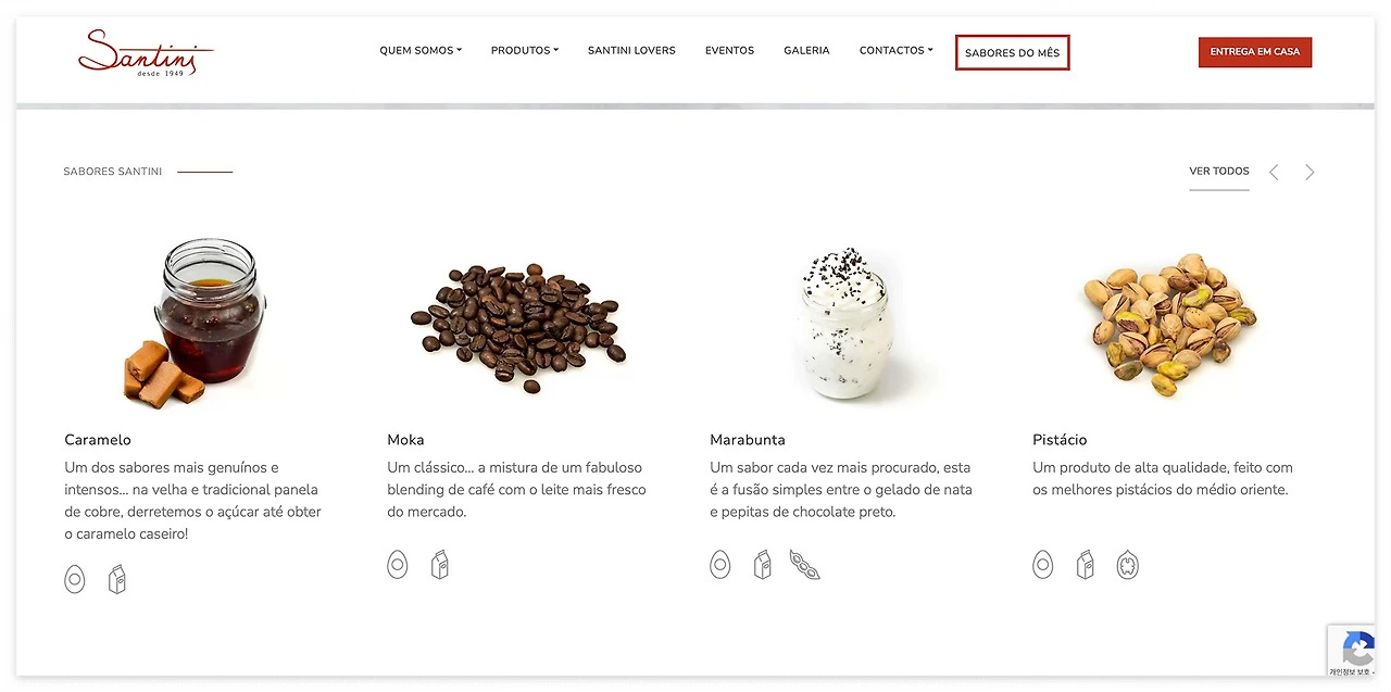글을 쓰면서 Santini 공식 웹사이트를 찾아봤다. 웹사이트 이곳저곳을 구경하니 재밌었다. 좋은 재료를 사용하는 걸 강조하기 위에 생과일 이미지를 사용하고 있고, 하얀색과 붉은색을 반복 사용하면서 젤라또 가게의 행복하고, 명쾌하고 발랄한 인상을 표현하고 있다. 가게 역사 페이지를 보니, 이곳은 아틸리오 산티니(Attilio Santini)라는 이탈리아인이 포르투갈에 차린 아이스크림 가게라고 한다. 난 포르투갈 사람이 직접 차린 줄 알았는데, 신기신기했다.