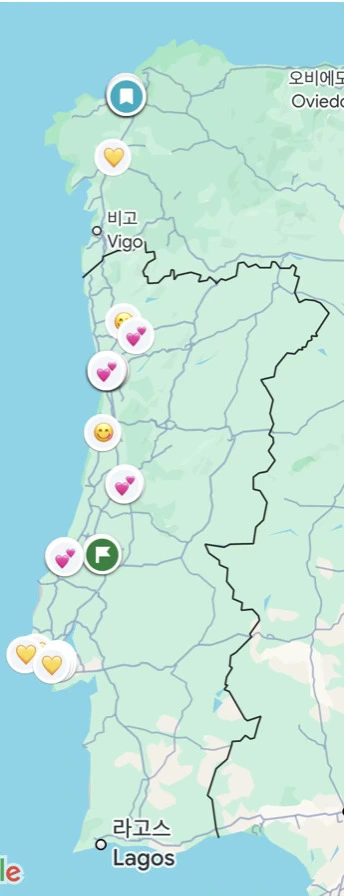 출발은 리스본Lisboa에서 하기로 했다. 책에서 읽었던 순례길의 노선을 참고했다(사실 버스와 기차로 이동하는 순례길 코스일지도…). 도서를 읽으면서 기억에 남았던 곳을 군데군데 추가했다. 나자레Nazare, 파티마Fatima, 브라가Braga, 그리고 코임브라Coimbra.