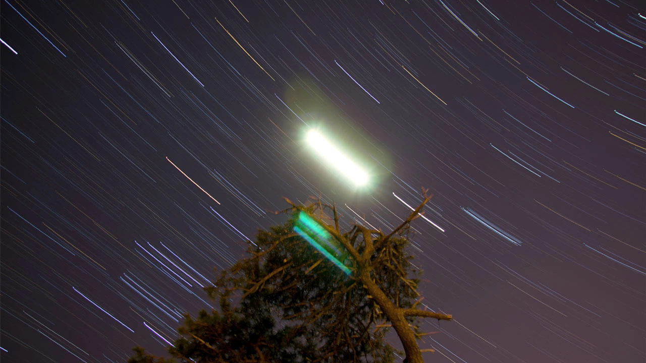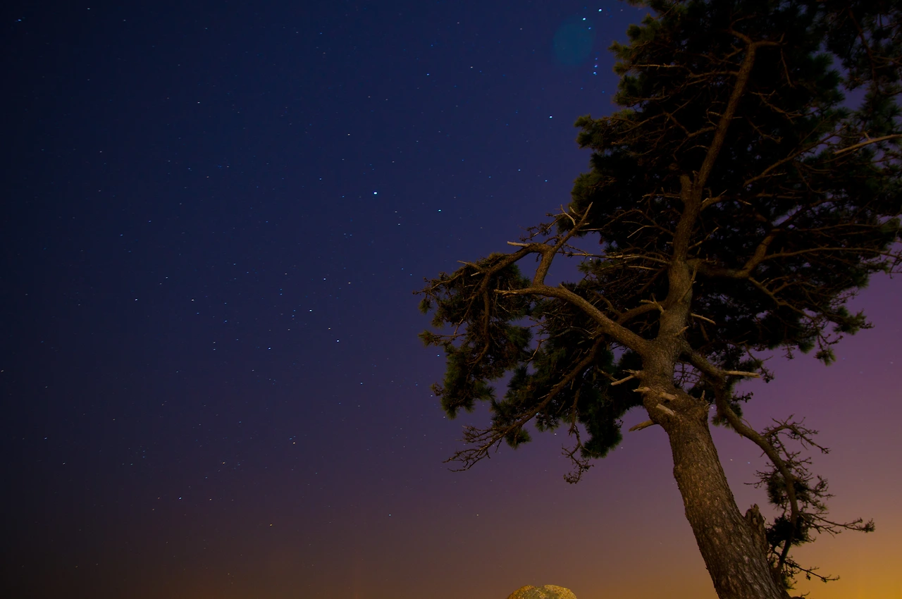 조금은 흐리지만 나무 위에 걸터앉은 달과
